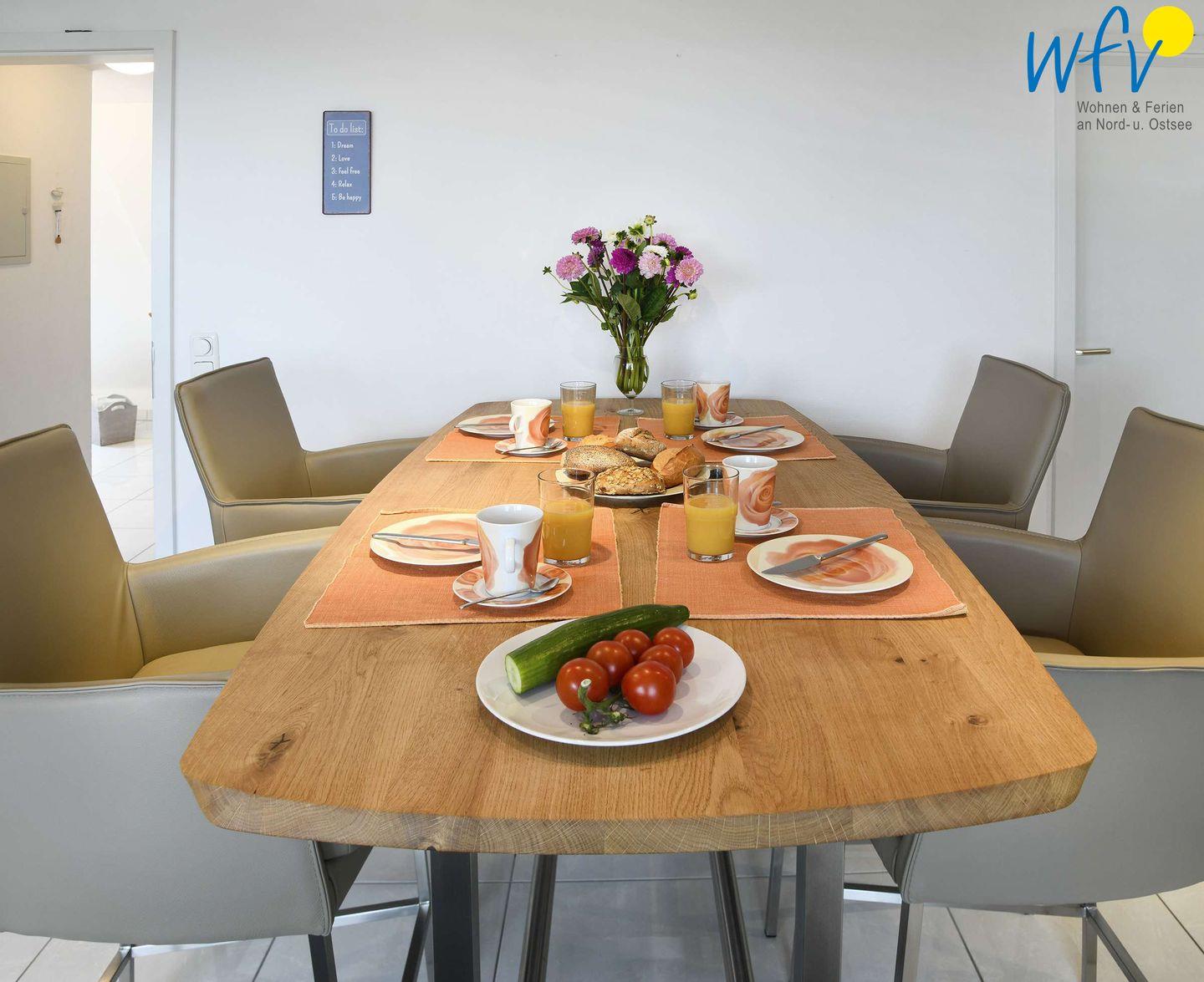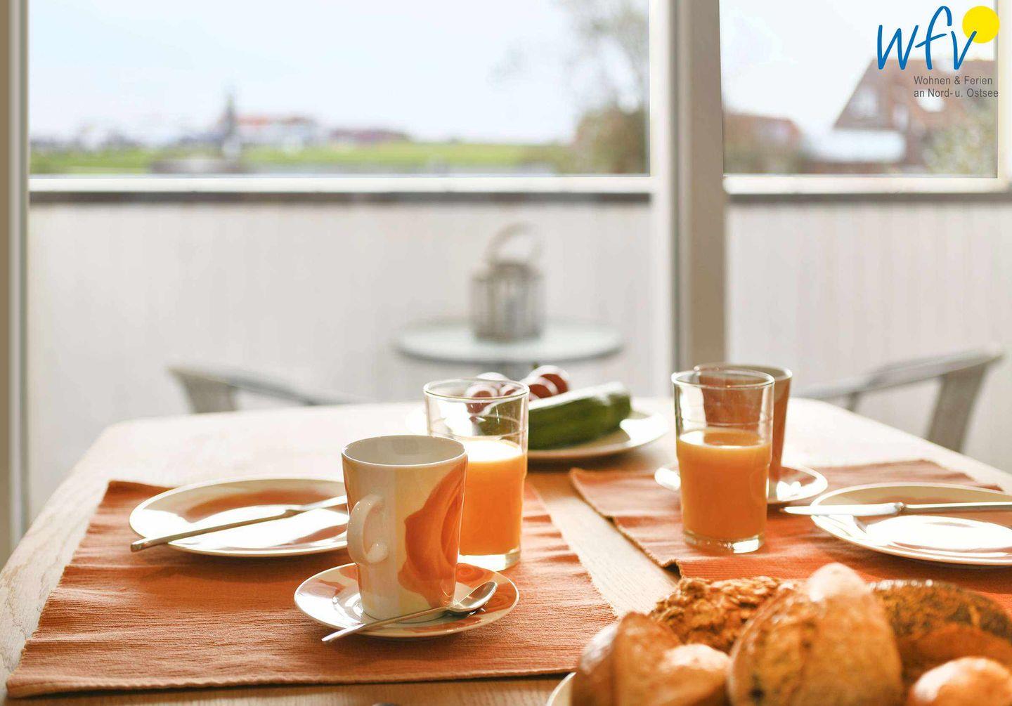 Bereits beim Ferienfrühstück einen Blick auf das Wattenmeer genießen...