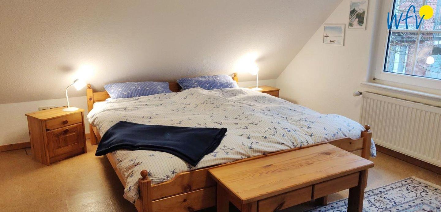 Das separate Schlafzimmer befindet sich im Obergeschoss und ist mit einem bequemen Doppelbett ausgestattet (180 x 200 cm). Ein zusätzliches WC und ein Waschbecken bieten Ihnen angenehme Ausweichmöglichkeiten.