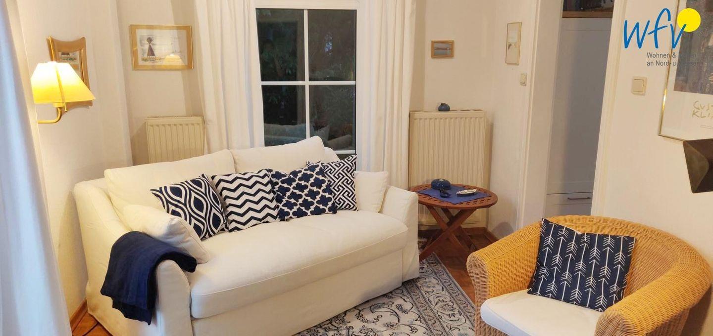 Die 50 m² große Maisonette-Wohnung „Wattenmeer“ bietet Ihnen herrliche Möglichkeiten, um in vollen Zügen zu relaxen und einfach mal die Seele baumeln zu lassen: Eine gemütliche Sofaecke mit Sessel im Wohnzimmer lädt zum Lesen oder Fernsehen ein, in dem separaten Schlafzimmer mit bequemem Doppelbett sind Ihnen erholsame Nächte garantiert und auf der sonnigen Terrasse können Sie wunderbar Sonne tanken und an der frischen Nordseeluft entspannen!