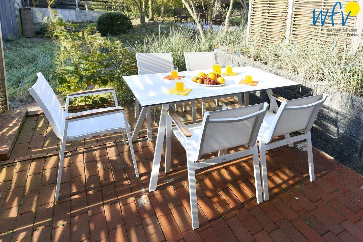 Sonne und frische Nordseeluft buchen Sie in der Ferienwohnung "Gartenblick" inklusive! Auf der Terrasse erwarten Sie herrliche Entspannungsmomente. Hier ganz in Ruhe den guten Urlaubskrimi zu lesen ist ein wunderbares Urlaubsgefühl!