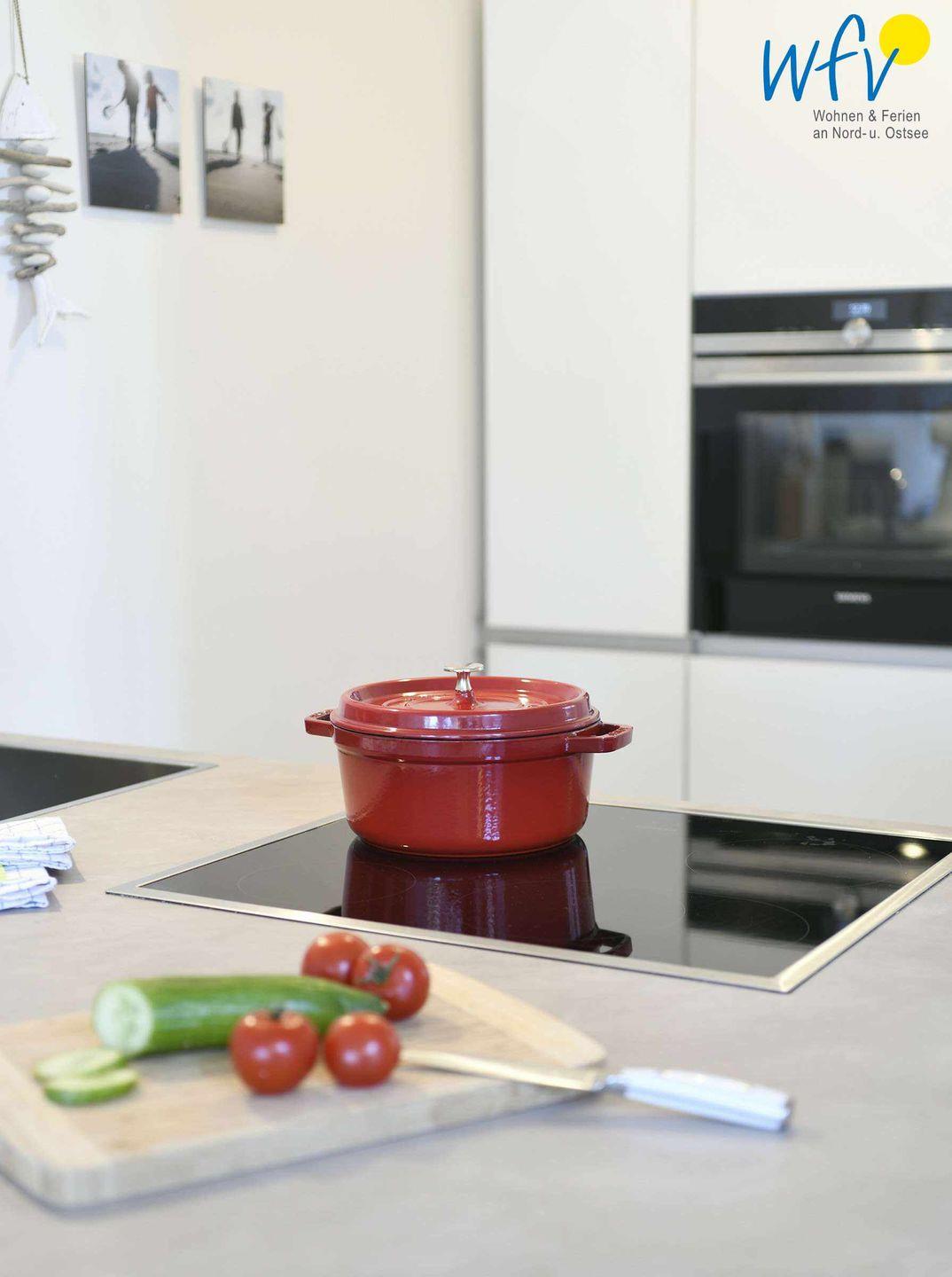 Damit Sie sich in Ihrem Urlaub bequem selbst verpflegen können, finden Sie in der modernen Küche diverse Elektrogeräte vor - u.a. einen Induktionsherd, einen Backofen, einen Kühlschrank mit Gefrierfach und einen Geschirrspüler sowie eine Senseo-Kaffeemaschine, einen Wasserkocher und einen Toaster.