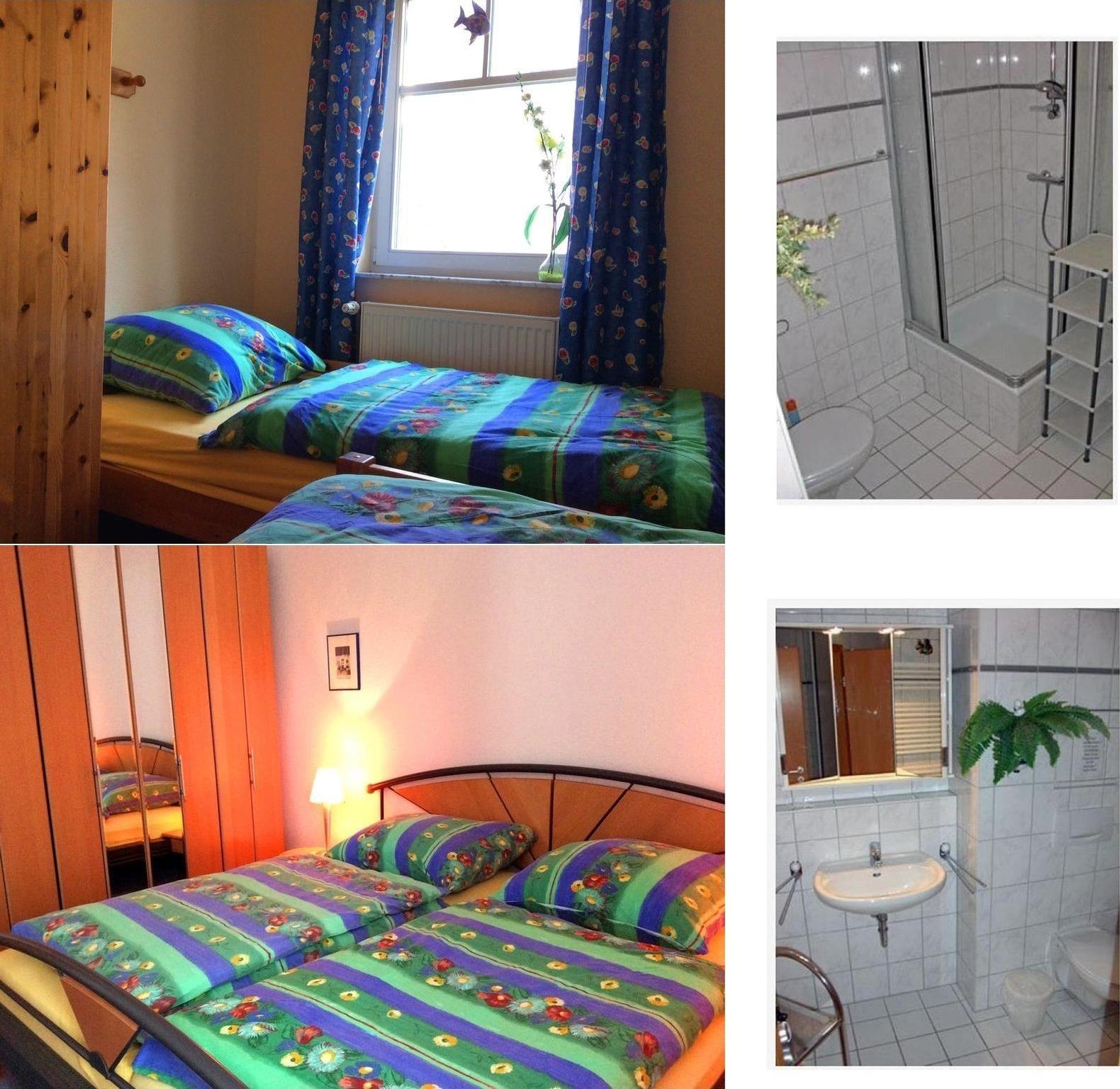 Es stehen Ihnen ein Wohnzimmer mit Küchenzeile , ein Schlafzimmer mit Doppelbett und Fernseher, und ein Schlafzimmer mit zwei Einzelbetten zur Verfügung. Als fünftes Bett kann ein Klappbett 90x200cm dazu gestellt werden. Ein Badezimmer mit Dusche/WC und Spiegelschrank und Fön, sowie ein Flur mit Garderobe und ein Abstellraum.
