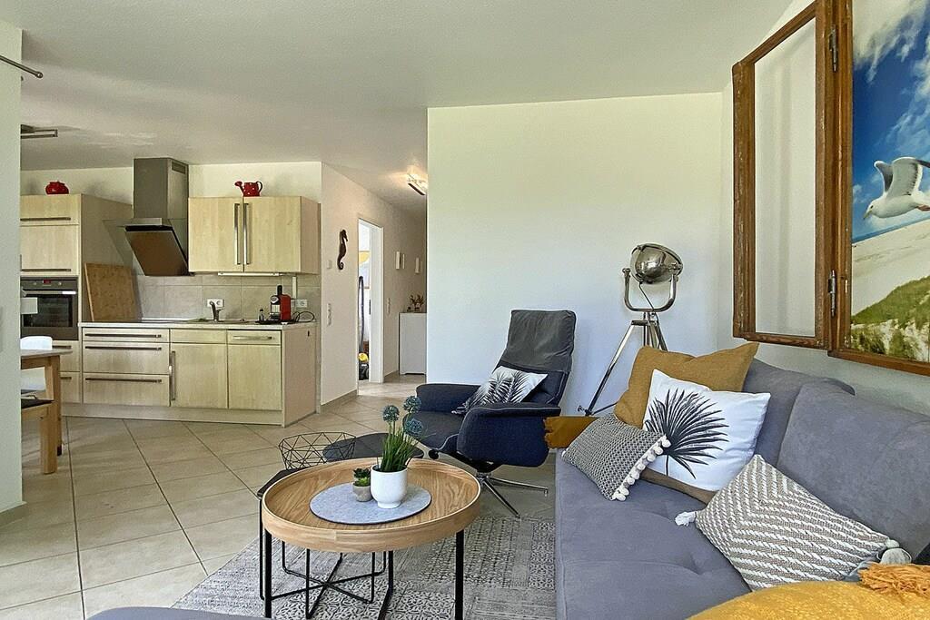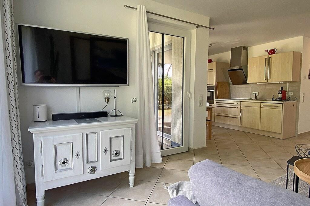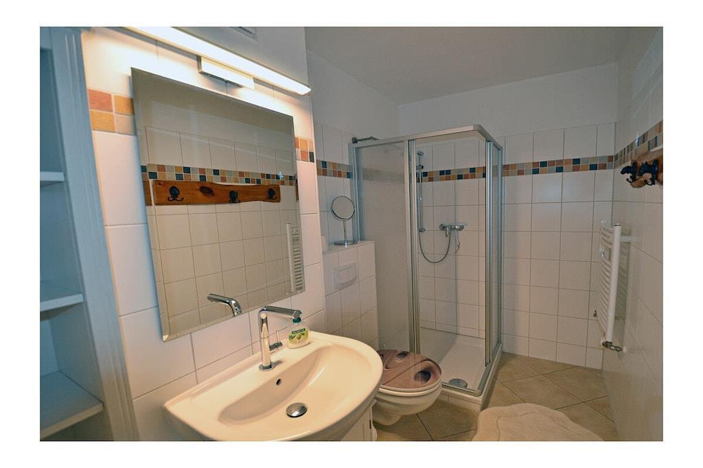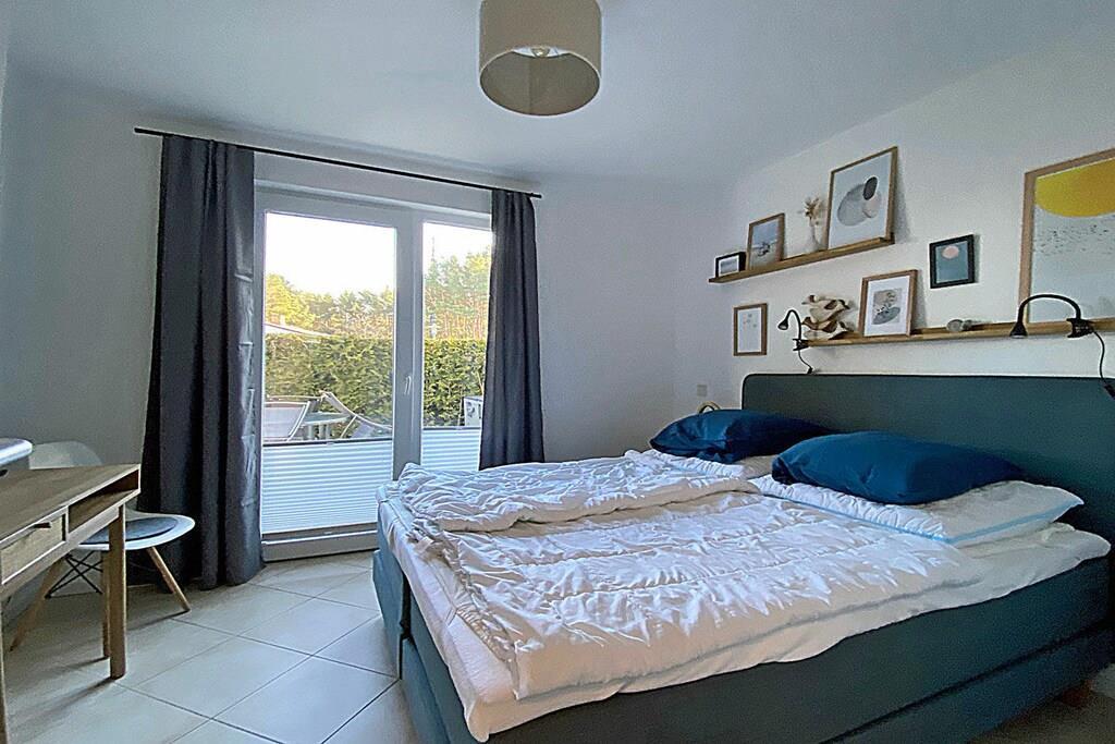 Wohn- Essbereich mit gemütlicher vollwertiger Ausziehcouch (140cm × 200cm) und Sessel, Terrassenzugang, TV/ Sat (Flatscreen), kostenfreies Internet (WLAN), Radio (Empfang über TV), moderne offene komplett ausgestattete Einbauküche mit 4-Plattenherd (Ceranfeld), Backofen, Mikrowelle, Kühlschrank mit kleinem Gefrierfach, Geschirrspüler und diversen Elektrogeräten, großzügiges Schlafzimmer mit Doppelbett (160 x 200 / durchgehende Matratze) und TV, großer Kleiderschrank, Tresor und Terrassenzugang, komfortables Bad mit Dusche/WC, Fön und Kosmetikspiegel, überdachte Terrasse mit Gartenmöbeln. “Besonderer Traumurlaub in faszinierender Lage direkt am Sandstrand“ Die Stranddüne ist komfortabel und modern eingerichtet. Alle Räume sind mit Fußbodenheizung ausgestattet. Die Terrasse mit gemütlichen Gartenmöbeln laden zum Verweilen und Entspannen ein. Von der Wohnung aus haben Sie einen direkten Zugang zum feinsandigen Badestrand mit Blick vom Wasser bis nach Kap Arkona. Die „Stranddüne“ ist ein Nichtraucherquartier. Waschmaschine und Trockner stehen im Gemeinschaftsraum gegen Gebühr (3-5 Euro) zur Verfügung. Abschließbare Fahrradabstellmöglichkeit ist im Keller vorhanden. Für Klein und Groß gibt es diverse Sport und Strandspiele. Und für die gemütlichen Abende Bücher und Gesellschaftsspiele. Einkaufsmöglichkeiten, Bäcker und Restaurants in unmittelbarer Nähe. Vom ca. 2 km entfernten Hafen in Breege sind Ausflugsmöglichkeiten per Schiff zur Insel Hiddensee und zu den Störtebeker-Festspielen möglich. Es gibt zwei PKW-Stellplätze direkt am Objekt. Optimale Rad- und Wandermöglichkeiten um die Insel zu erkunden, runden das Angebot ab. Bei uns sind Hunde willkommen (Gebühr Euro 5,-Euro pro Nacht).