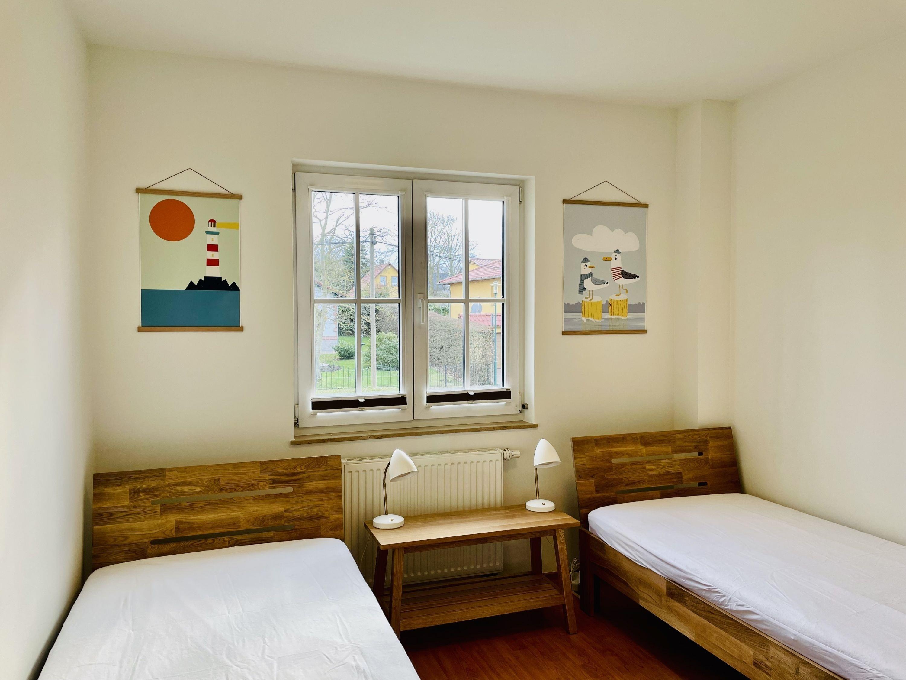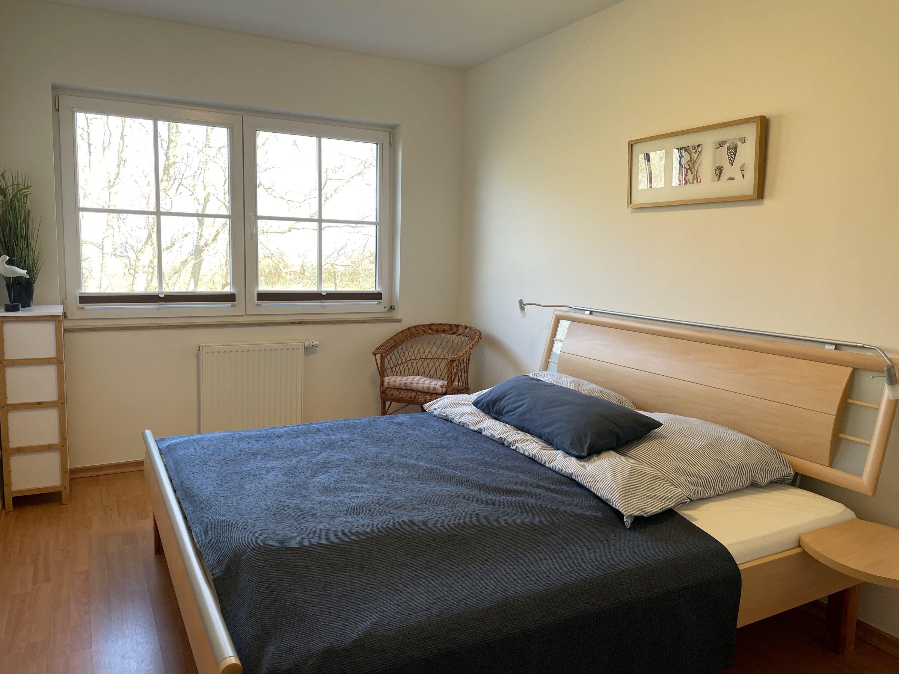 Wohnzimmer, 3 Schlafzimmer, Küche, Bad mit Wanne und Dusche, Gäste-WC, hauseigene Sauna, Terrasse mit Garten und wunderschönem Meerblick (direkt über den Riedensee bis zum Meer; bei voller Blüte "nur" seitlich), Wohnfläche ca. 100 qm.