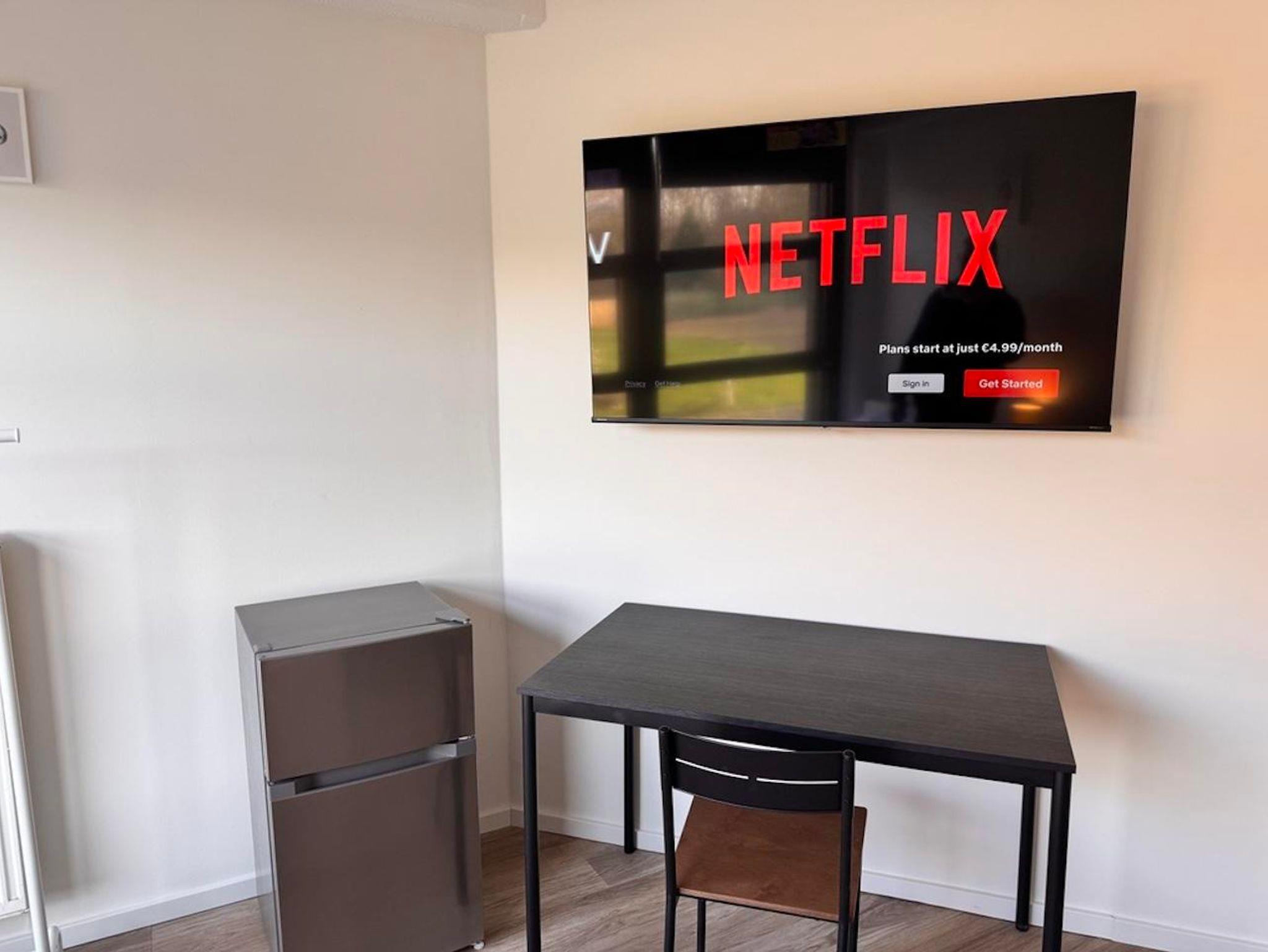 In der Unterkunft stehen zahlreiche Annehmlichkeiten zur Verfügung. Leistungsstarkes WIFI, eine eigene Kühl-/Gefrierkombination auf dem Zimmer und ein 55 Zoll Smart TV. Zudem gibt es kostenlose Parkmöglichkeiten direkt vor Ort.