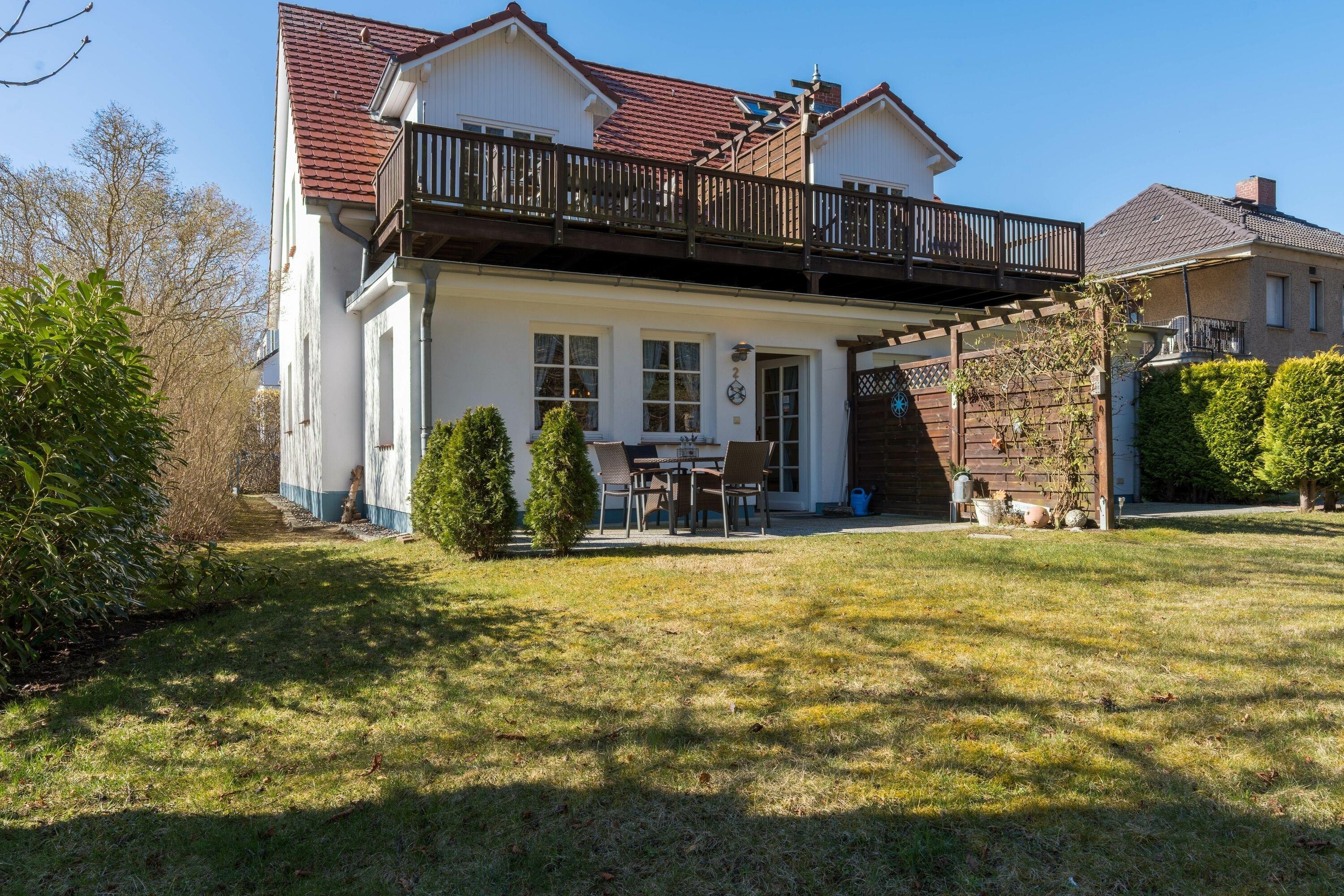 Die große Terrasse lädt zu entspannten Stunden im Freien ein – ob beim Frühstück in der Morgensonne oder beim Ausklang des Tages mit einem Glas Wein. Der gepflegte Garten mit Liegewiese und Gartenmöbeln bietet zusätzlichen Raum zum Relaxen.