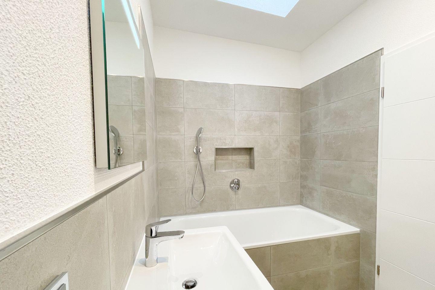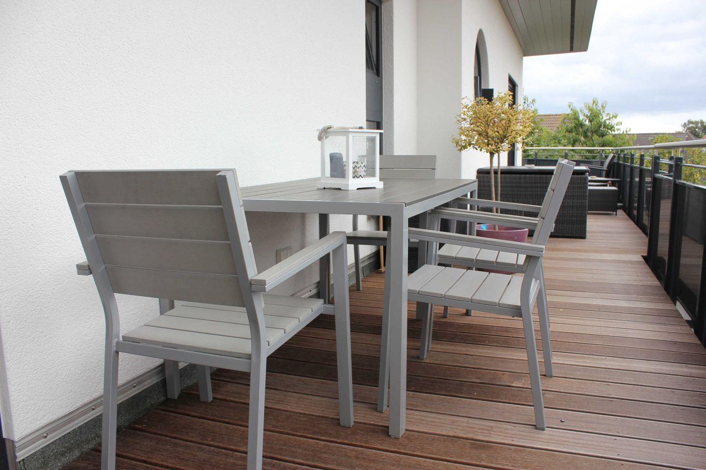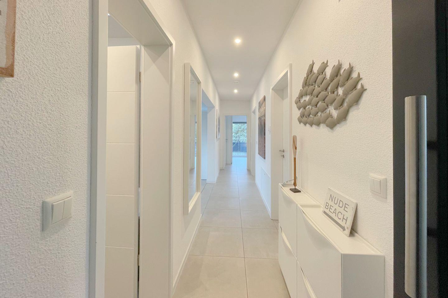 Ein weiteres Highlight ist die Terrasse, die zu geselligen Frühstücken oder entspannten Abenden bei einem Glas Wein einlädt. Lehnen Sie sich zurück, genießen Sie die frische Luft und den Blick in die ruhige Umgebung. Für entspannende Momente sorgt die Fußbodenheizung in der gesamten Wohnung, die gerade an kühleren Tagen für ein behagliches Ambiente sorgt.