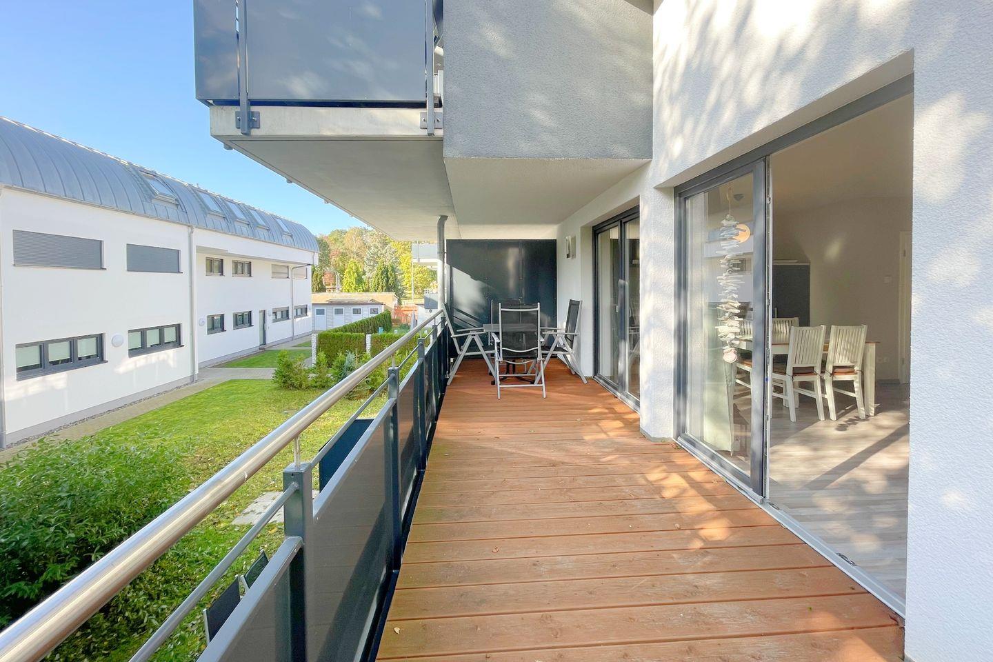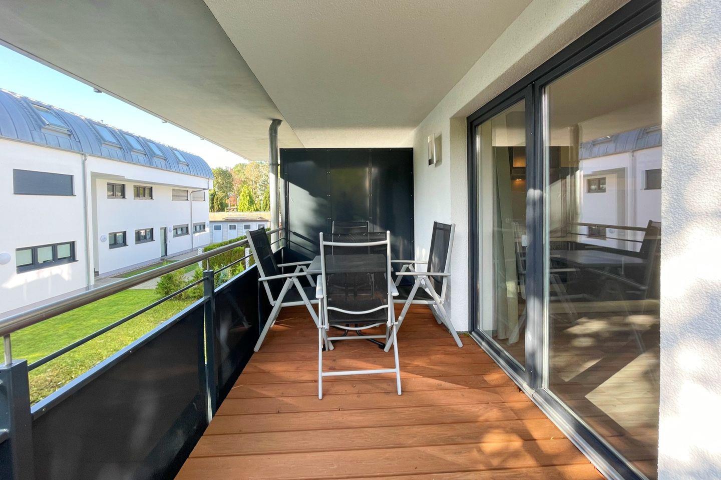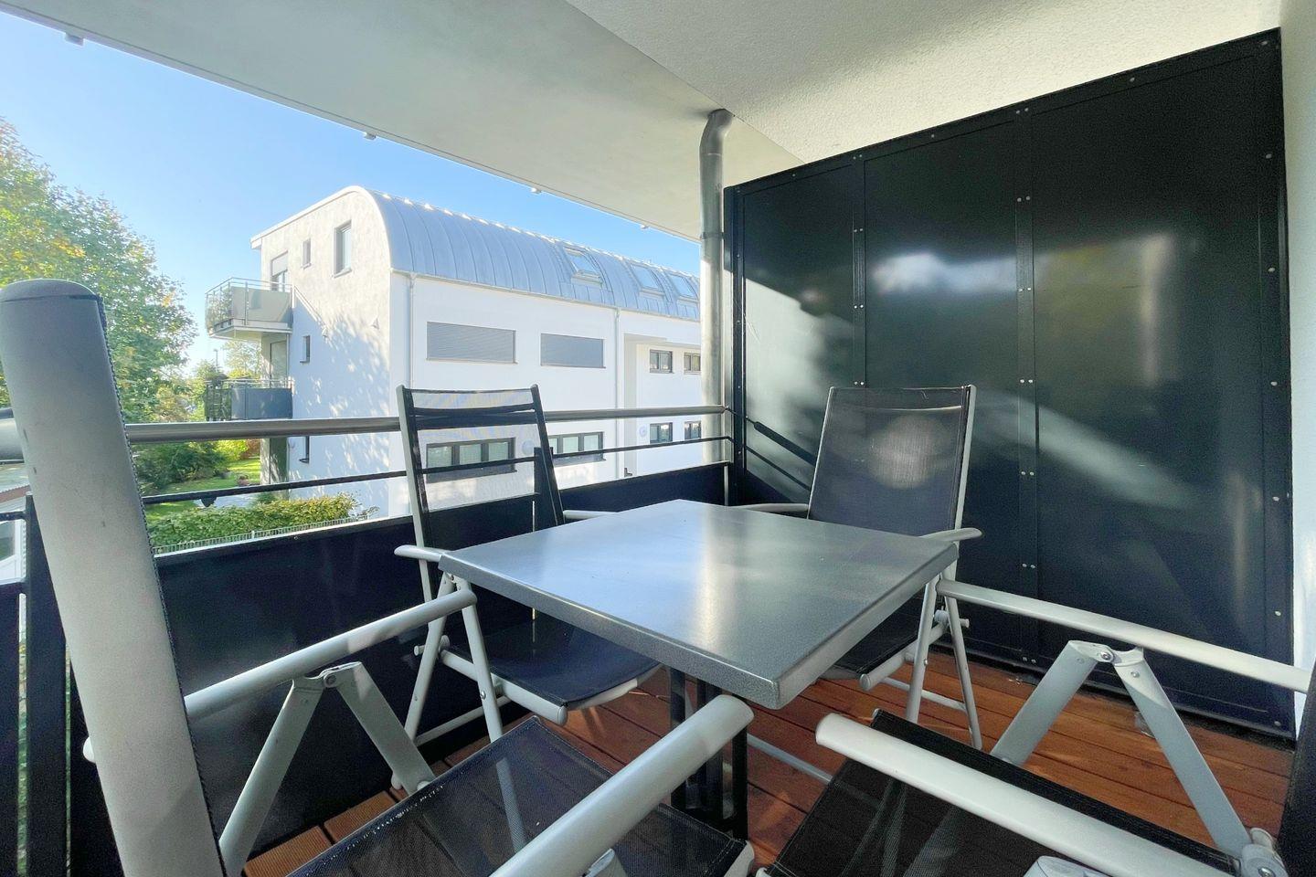Ein absolutes Highlight ist der überdachte Balkon, der sich perfekt eignet, um die frische Luft und den Blick auf die Umgebung zu genießen. Bei schönem Wetter können Sie hier entspannen und den Sonnenuntergang beobachten, sodass Sie die Natur in vollen Zügen auskosten können.