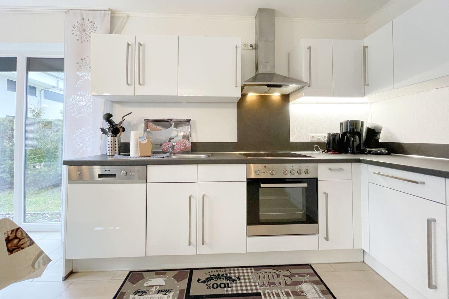 Die helle und moderne Ausstattung wird durch eine offene Küche ergänzt, die mit sämtlichen Annehmlichkeiten versehen ist, die Sie für die Zubereitung Ihrer Lieblingsgerichte benötigen – von einer Mikrowelle über einen Herd bis hin zu einer Spülmaschine. Genießen Sie Ihre Mahlzeiten am großen Esstisch oder auf der herrlichen Terrasse mit Gartenmöbeln, die zu entspannten Momenten im Freien einlädt.