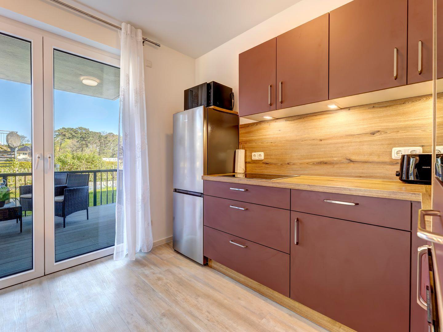Beginnen Sie Ihren Morgen mit einem köstlichen Frühstück auf dem überdachten Balkon oder im lichtdurchfluteten Wohnbereich. Die integrierte Küche ist vollausgestattet und lässt keine Wünsche offen - perfekt, um gemeinsam zu kochen und zu genießen.