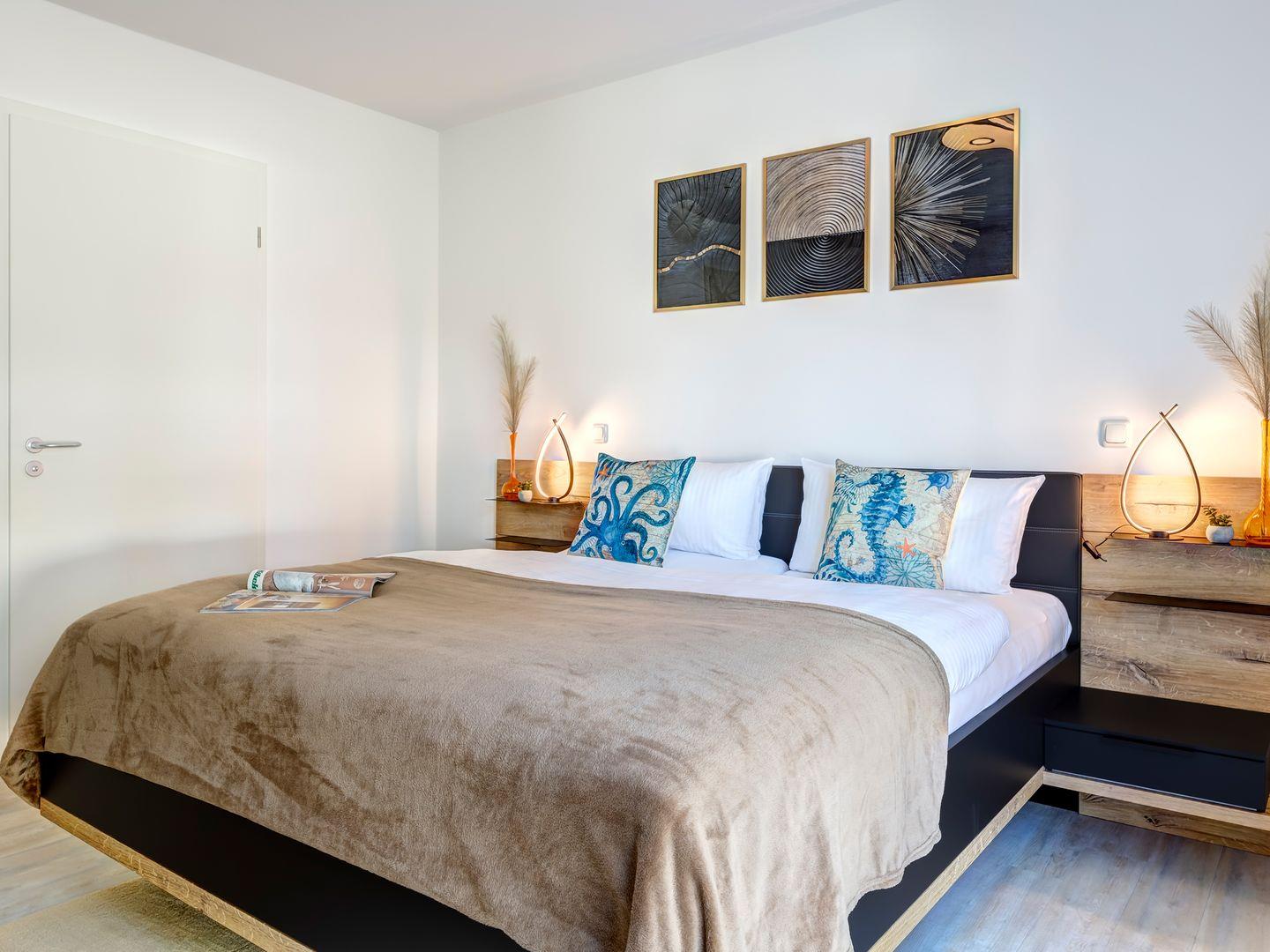 Diese großzügige Wohnung zeichnet sich durch ihre Liebe zum Detail aus und bietet Ihnen alles, was Sie für einen entspannten Urlaub benötigen. Mit 2 Schlafzimmern, jeweils ausgestattet mit komfortablen Doppelbetten, sowie einem Schlafsofa, bietet sie ausreichend Platz für bis zu 6 Gäste.