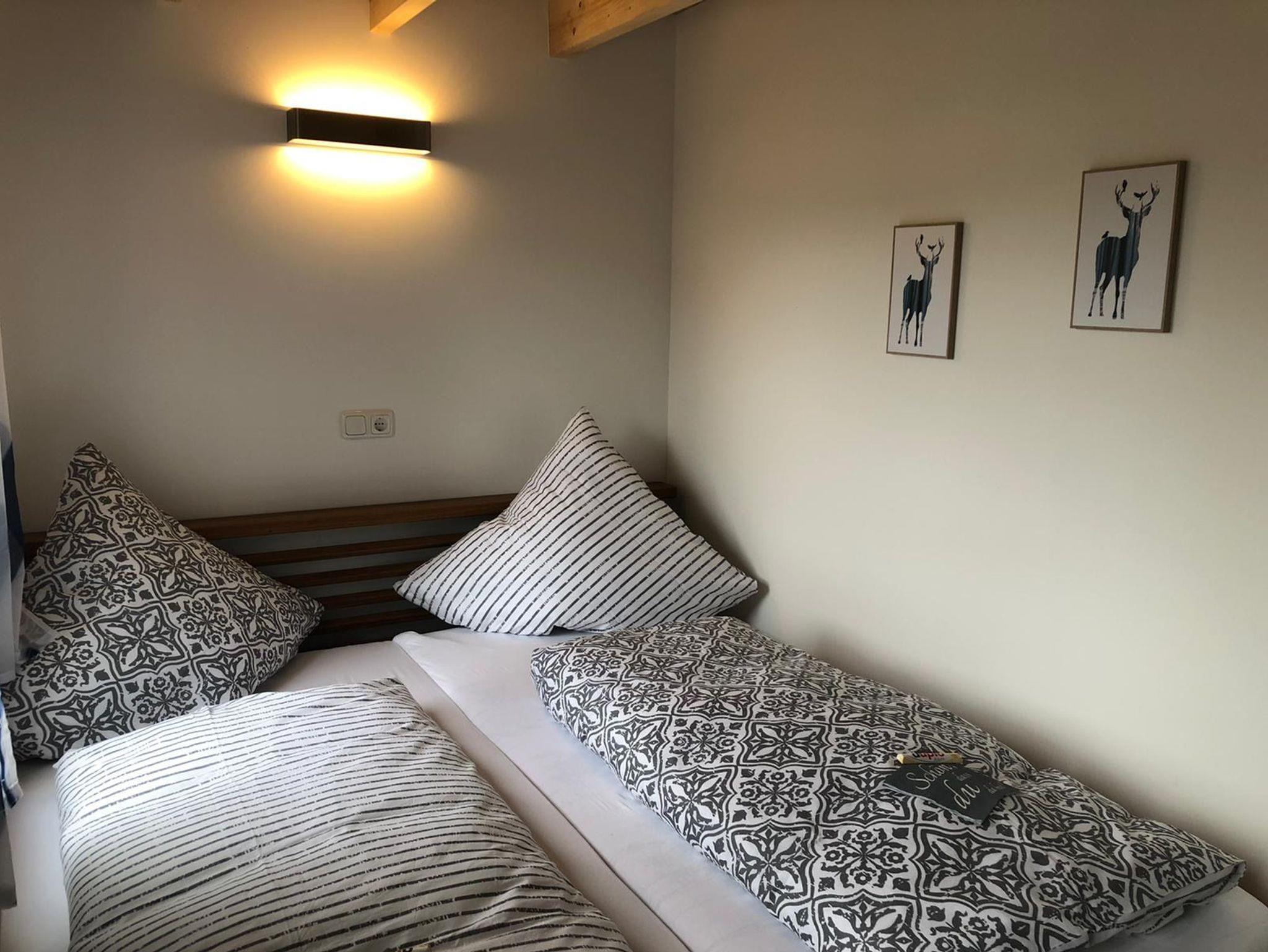 Unser Ferienhaus bietet Platz für Paare, Familien oder Freunde. Zwei gemütliche Schlafzimmer mit jeweils einem Doppelbett ? eines davon mit TV ? sorgen für erholsamen Schlaf. In der großzügigen Wohnküche mit Sofa, TV und Essbereich lässt es sich wunderbar gemeinsam kochen, essen und entspannen. Das Sofa kann bei Bedarf als zusätzlicher Schlafplatz genutzt werden, eine weitere Matratze stellen wir auf Anfrage gerne zur Verfügung.