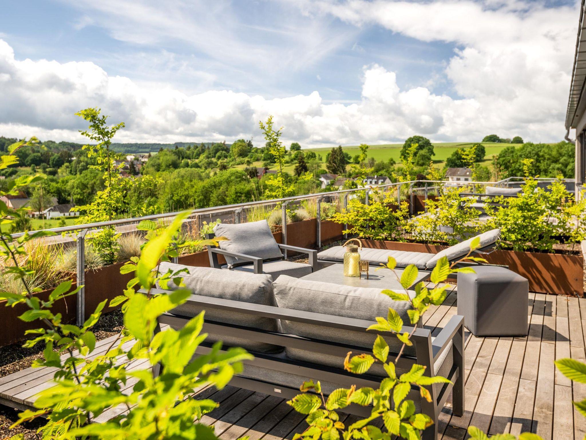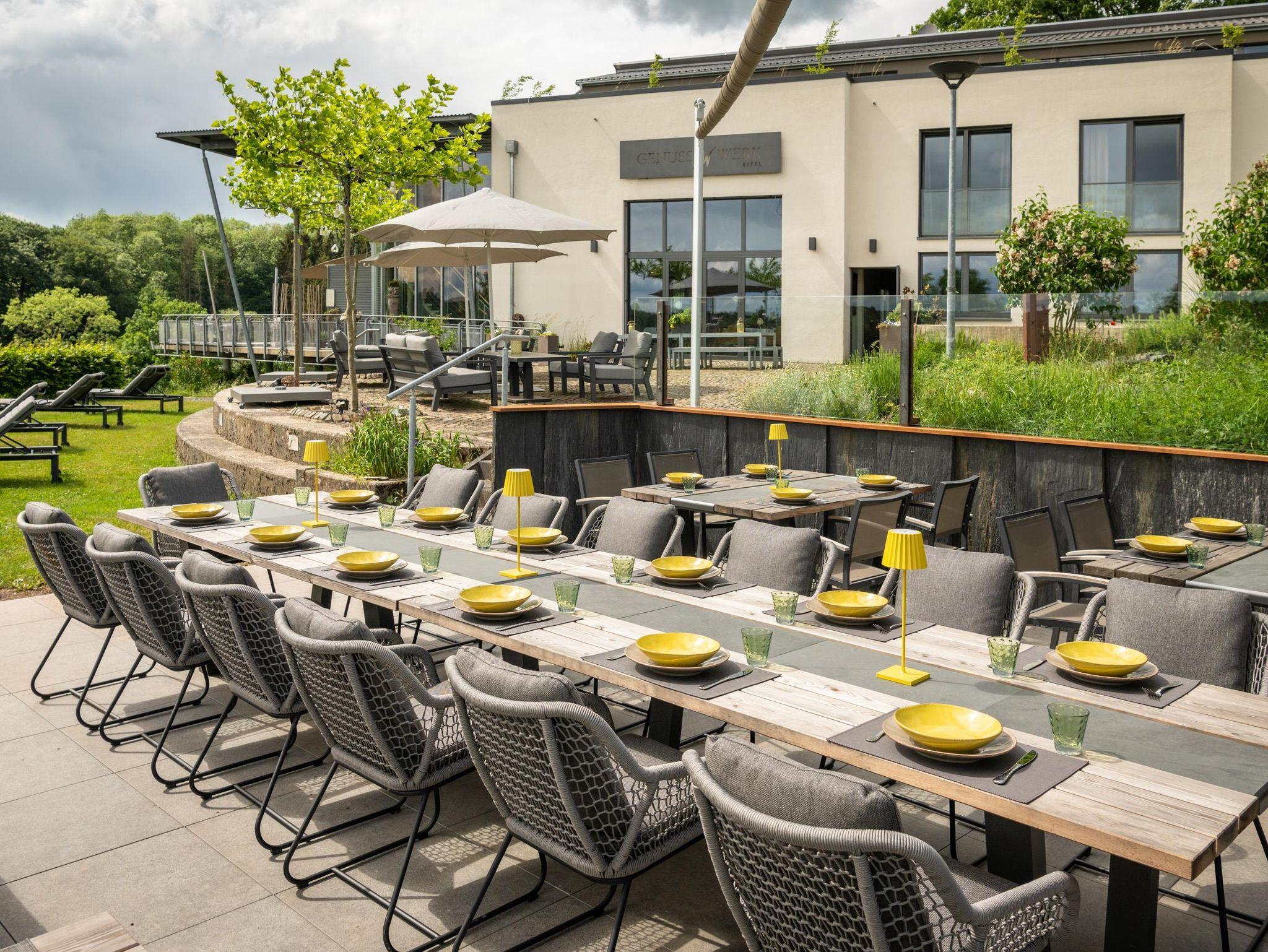 Die moderne und transparente Architektur des Genusswerks eröffnet wunderbare Panoramablicke in die weite, grüne Hügellandschaft des Naturparks Südeifel. Alle zehn Suiten sind sehr hochwertig und individuell eingerichtet. Einige verfügen sogar über einen privaten Whirlpool. Die sonnige Terrasse des Genusswerks ist der ideale Ort zum Entspannen und dabei ungestört die idylische Umgebung auf sich wirken zu lassen.