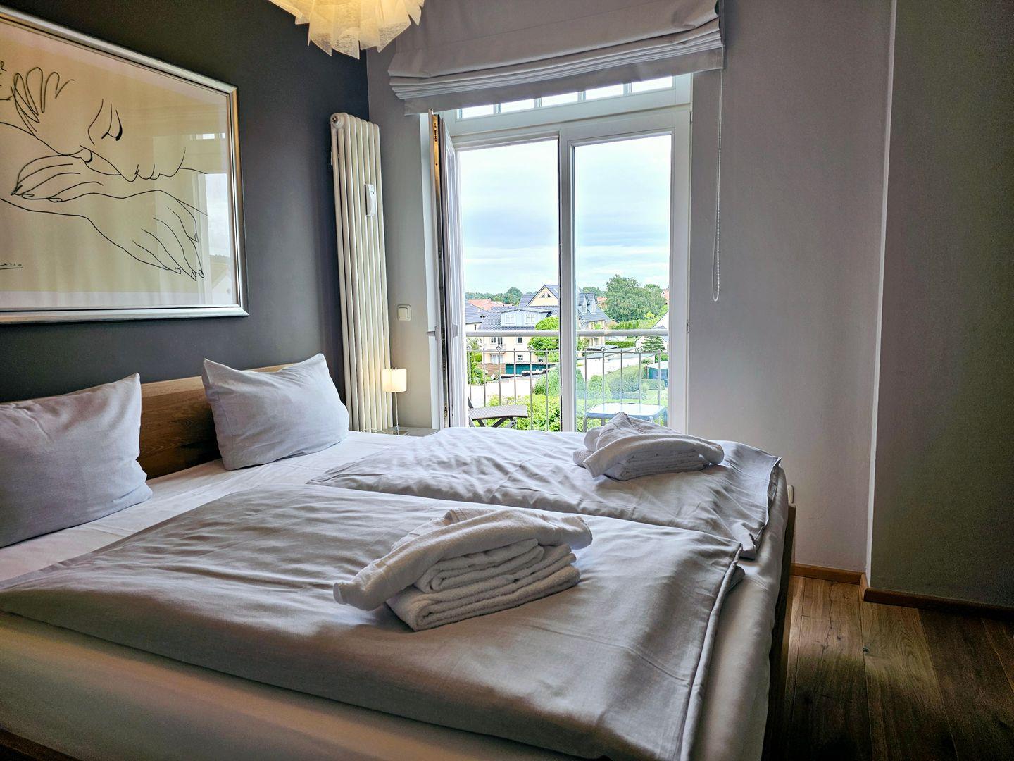 Charmante 2-Zimmer-Maisonettewohnung über den Dächern von Kühlungsborn mit zwei Balkonen, moderner Küche und herrlichem Blick bis zum Meer. Ideal für 2–4 Personen. Genießen Sie den Ostbalkon am Morgen und die sonnige Dachloggia am Abend. Inklusive Carport und Abstellraum – zentral, ruhig und nur wenige Gehminuten vom Strand entfernt.