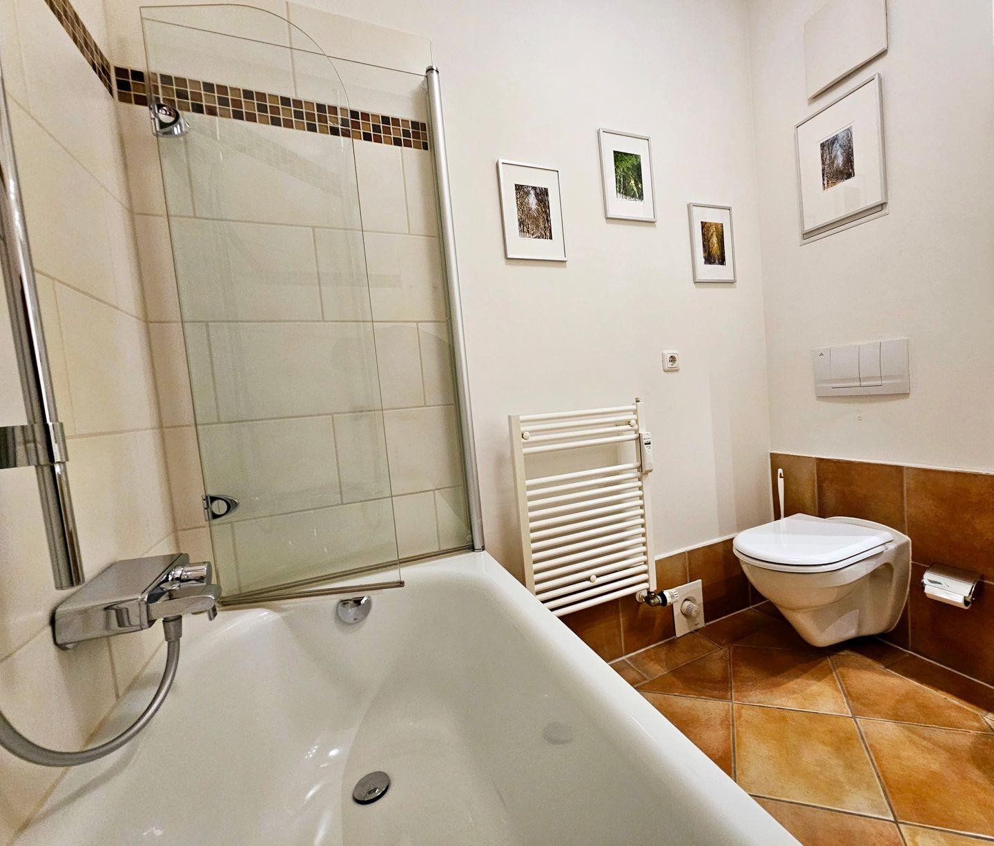 Diese liebevoll eingerichtete 2-Zimmer-Wohnung erstreckt sich über zwei Etagen und bietet auf rund 55 m² höchsten Wohnkomfort. Im unteren Bereich erwartet Sie ein gemütliches Schlafzimmer mit Doppelbett und Zugang zum Ostbalkon – perfekt für den ersten Kaffee in der Morgensonne. Das Badezimmer verfügt über eine Badewanne mit eleganter Duschabtrennung. Im Wohnzimmer steht Ihnen zusätzlich ein komfortables Schlafsofa (180 × 200 cm) zur Verfügung.
