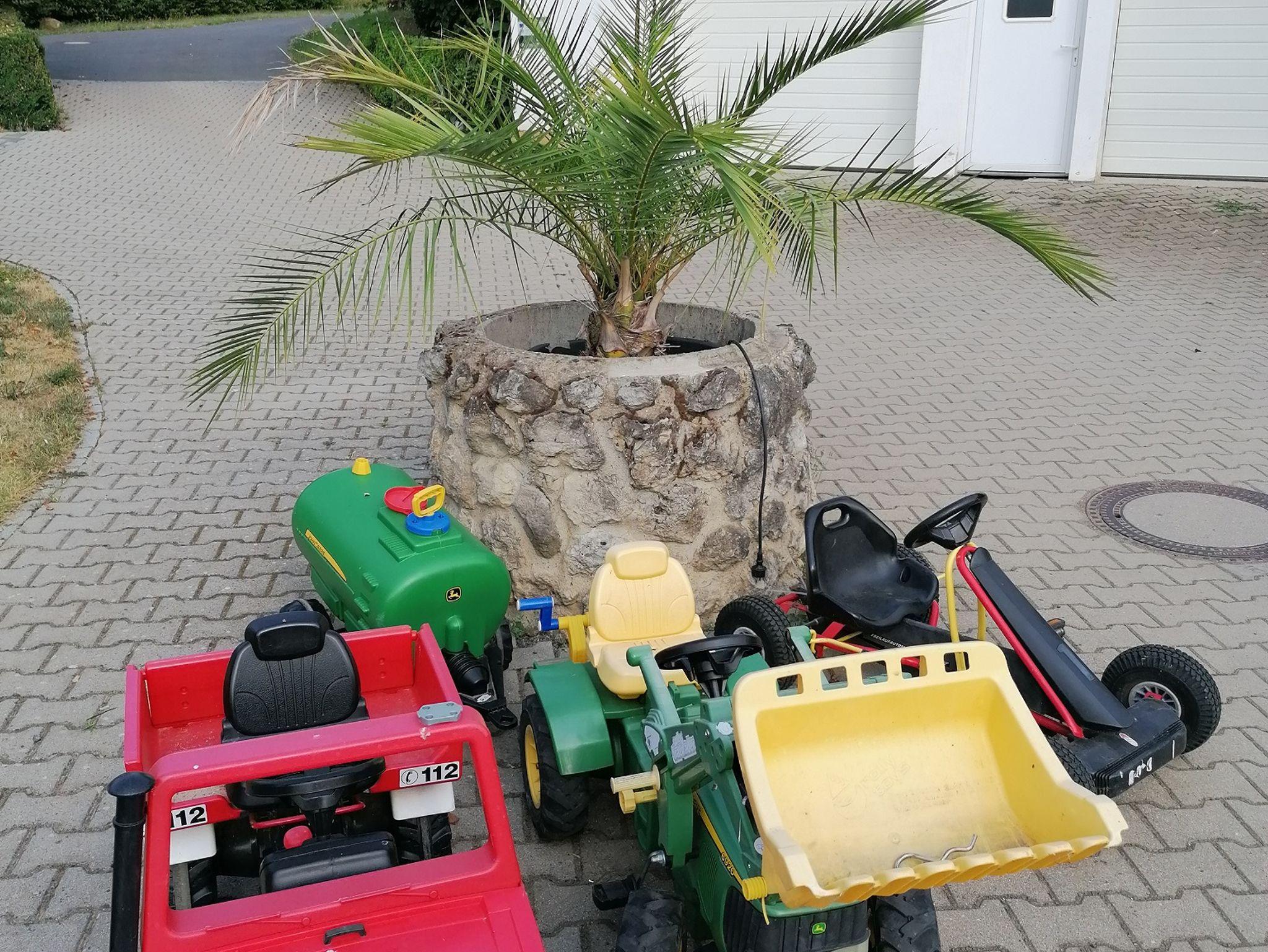 - Kinderspielplatz mit Rutsche, Schaukel, Spielturm, Fahrzeugen.