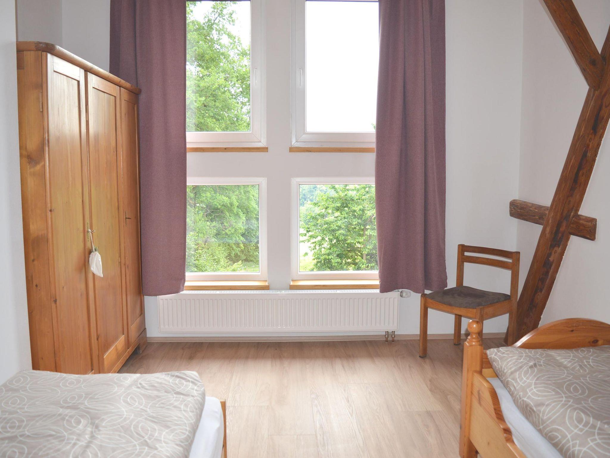 Die großzügige Ferienwohnung bietet auf ca. 100 m² Wohnfläche viel Platz für 2 bis 5 Personen und eignet sich ideal für Familien, Paare oder Monteure. Die Wohnung verfügt über drei Schlafzimmer – ein Doppelzimmer, ein Zimmer mit zwei Einzelbetten sowie ein weiteres Zimmer mit einem Einzelbett. Mittelpunkt der Wohnung ist das lichtdurchflutete Wohnzimmer mit großem Essbereich, das zum Entspannen und gemeinsamen Verweilen einlädt. Die voll ausgestattete Einbauküche mit Herd, Backofen, Kühlschrank, Kaffeemaschine und Wasserkocher bietet beste Voraussetzungen für die Selbstversorgung.