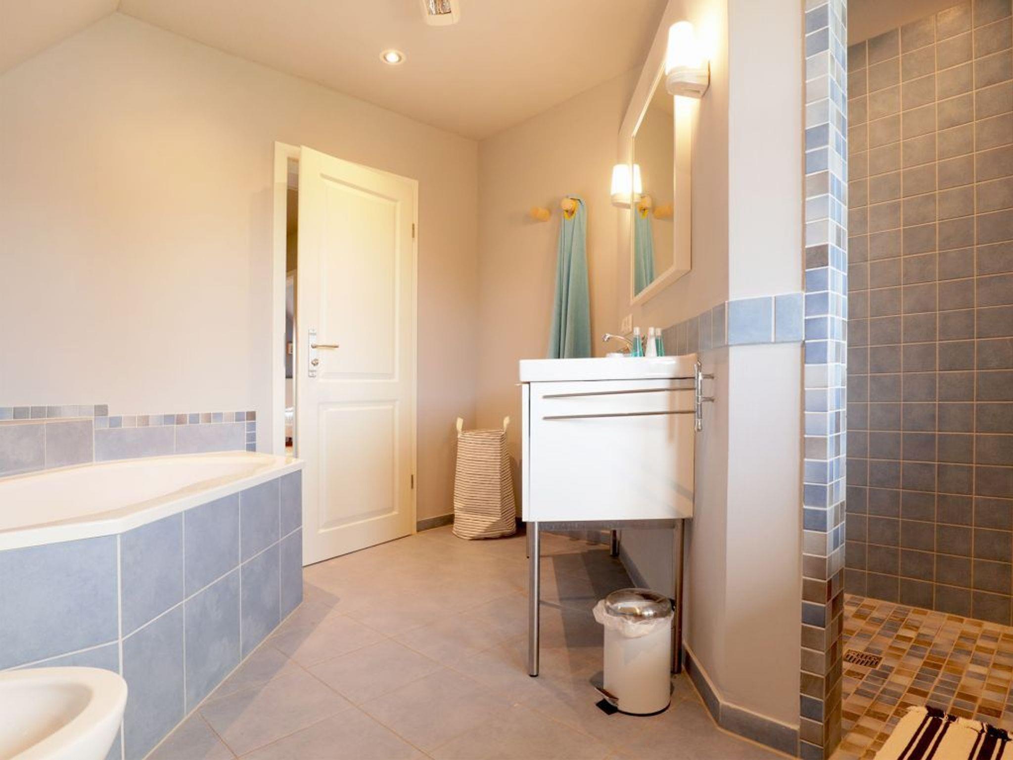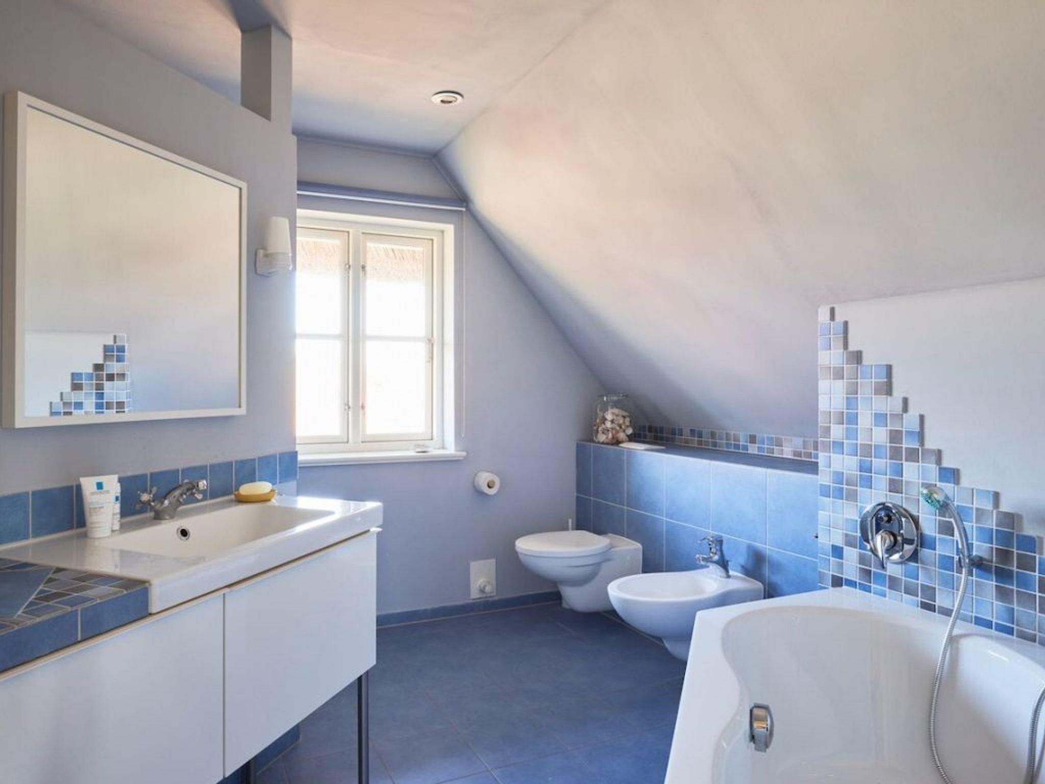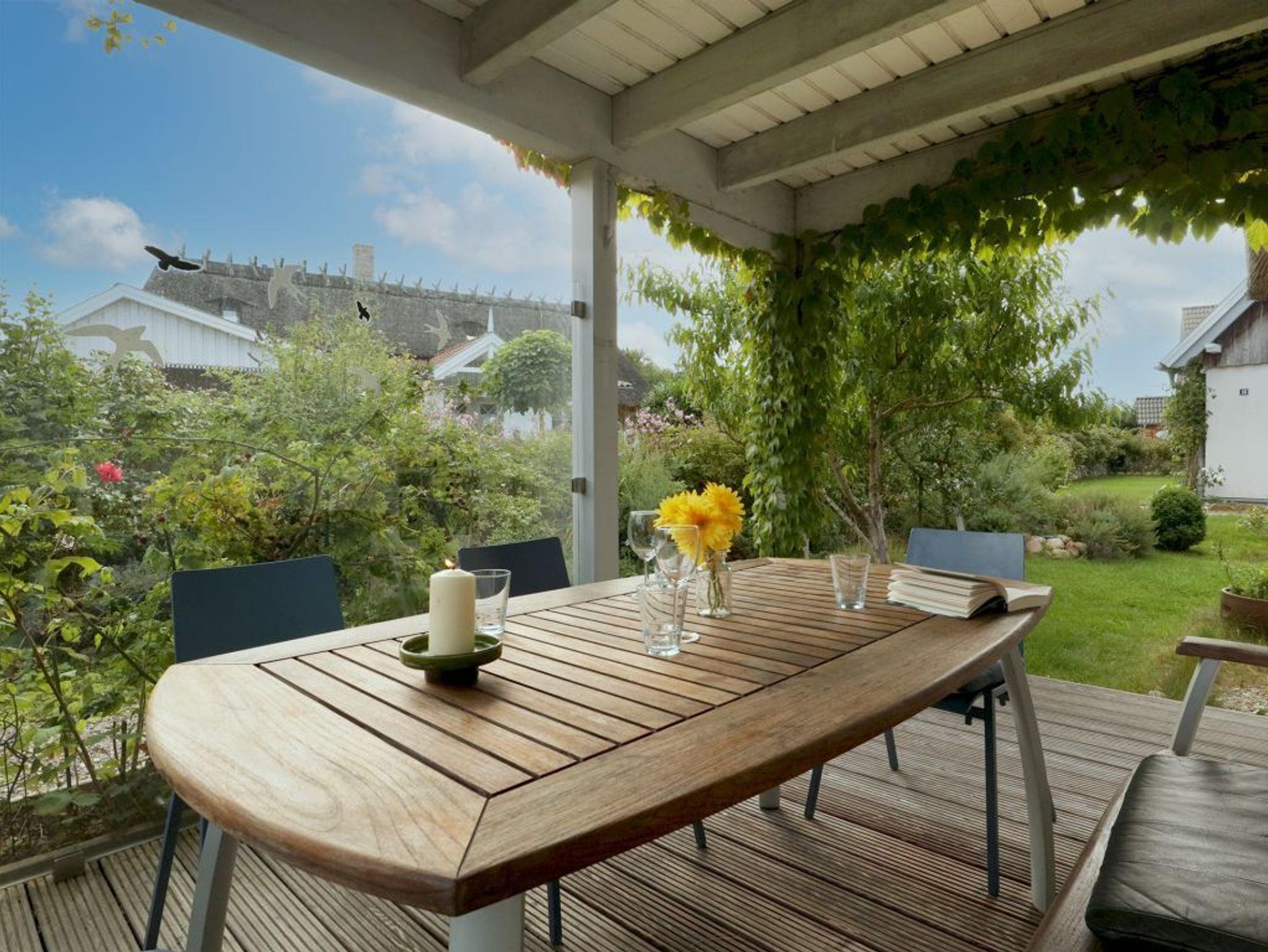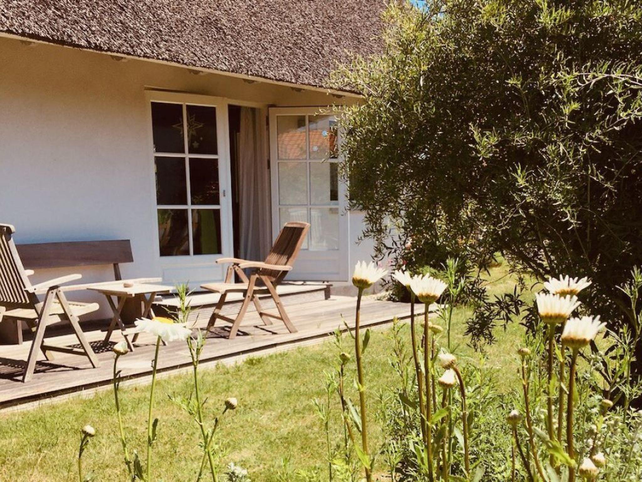 Mit einer Wohnfläche von 127qm ist dieses großzügige Ferienhaus unter Reet für eine Belegung mit bis zu 5 Personen nahezu perfekt. In nur 800 Meter gelangen Sie zum wunderschönen Strand mit guten Bademöglichkeiten. Das sehr hochwertig eingerichtete Einzelhaus erstreckt sich über zwei Etagen. Im Erdgeschoss, welches sich mit einem großflächigen Eingangsbereich präsentiert erwarten Sie sehr einladend möblierte Zimmer. Der behagliche Wohn-/Essbereich mit bequemer Couch und dem großen Esstisch, bietet Ihnen einen Kaminofen für wohlige Wärme. Kaminholz ist vorhanden. Selbstverständlich befinden sich auch ein TV-Gerät, DVD und Musikanlage im Wohnzimmer. Die familienfreundliche Ausstattung beinhaltet einen Kinderhochstuhl. Hochwertig ist die Küche, die geschickt in den Wohnraum integriert wurde. Zwei Terrassen, wovon eine überdacht ist, sind von der Küche und vom Wohnzimmer aus zu betreten. Somit können Sie im Sommer Ihre Mahlzeiten im Freien genießen und sich wunderbar entspannen. Der hübsch angelegte Garten lädt zum Sonnenbaden und Spielen ein. Außerdem befinden sich im Erdgeschoss des Hauses ein Arbeitszimmer wie auch ein gehoben gefliestes Duschbad. Im Hauswirtschaftsraum ist die Nutzung von Waschmaschine und Wäschetrockner gegeben. Über eine Holztreppe gelangen Sie in das Obergeschoss, wo sich im Flurbereich ein zweiter Fernseher und eine Sitzgelegenheit befinden. Des Weiteren sind auf dieser Etage zwei Schlafzimmer mit Doppelbett, davon eines der Schlafzimmer mit Balkon, sowie ein drittes Schlafzimmer mit einem Einzelbett. Das geräumige Badezimmer besitz ein Fenster und bietet Ihnen eine Badewanne wie auch eine ebenerdige Dusche, Bidet und WC. Das gesamte Ferienobjekt wird über eine Fußbodenheizung angenehm gewärmt. Insbesondere hervorzuheben ist, dass in diesem Haus ausschließlich naturbelassene Baumaterialien verwendet wurden. Gebührenfrei nutzen Sie den PKW-Außenstellplatz am Haus. Im Fahrradschuppen direkt am Haus können Sie Ihre mitgebrachten oder geliehenen Räder sicher verwahren. Weiterhin finden Sie hier eine Wallbox für Ladekabel mit dem Steckertyp 2 (11kW) sowie eine Schuko Doppelsteckdose für Ihr E-Bikes. Eine Kaution i.H.v.200,00 Euro wird erhoben. Es handelt sich um ein Nichtraucher Domizil, in dem Haustieren nicht gestattet sind.