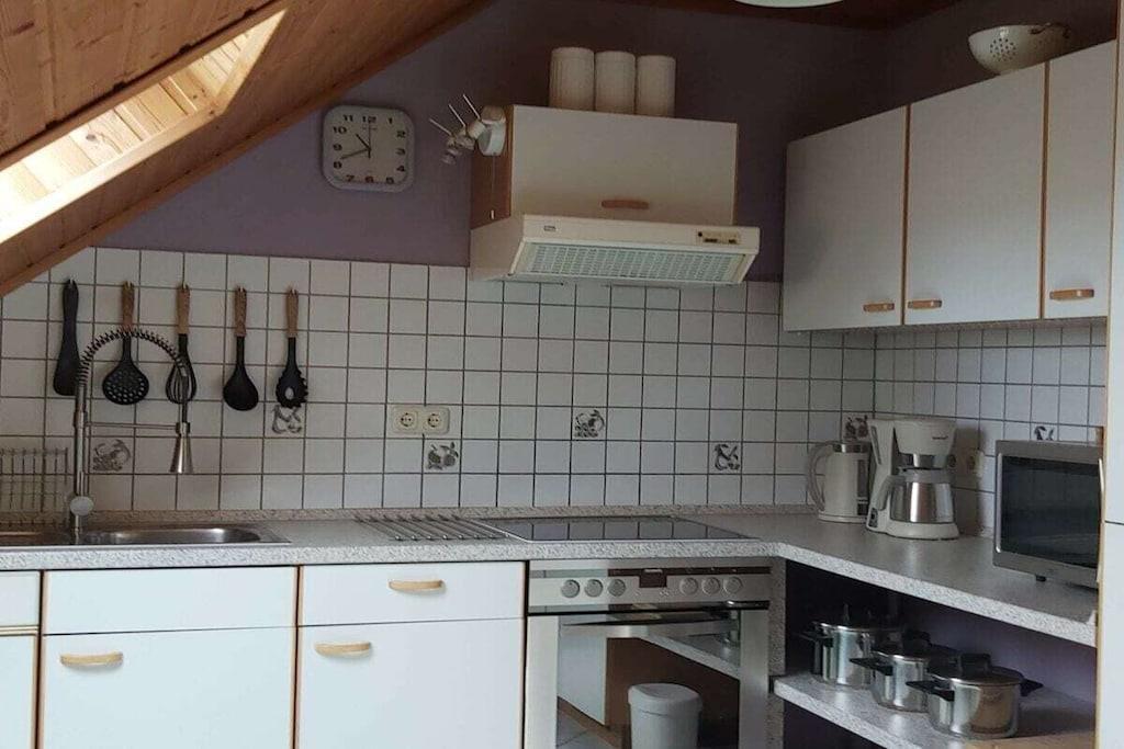 Ferieleiligheten ligger i øverste etasje i huset vårt. Kjøkkenet er fullt utstyrt og inkluderer elektrisk komfyr, stort kjøleskap med fryser og oppvaskmaskin. Ved siden av kjøkkenet er det en spiseplass for fem personer. Stuen har satellitt-TV. Stuen har en sittegruppe. Soverommet har to senger og en stor garderobe. Badet har badekar og dusj. Gangen har en garderobehylle og et skoskap.