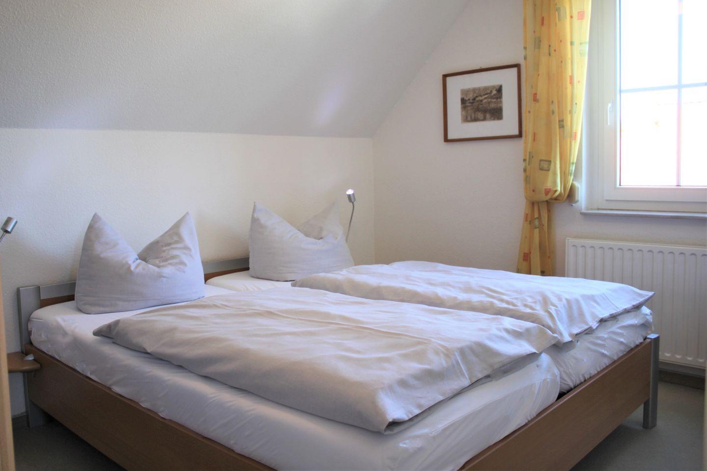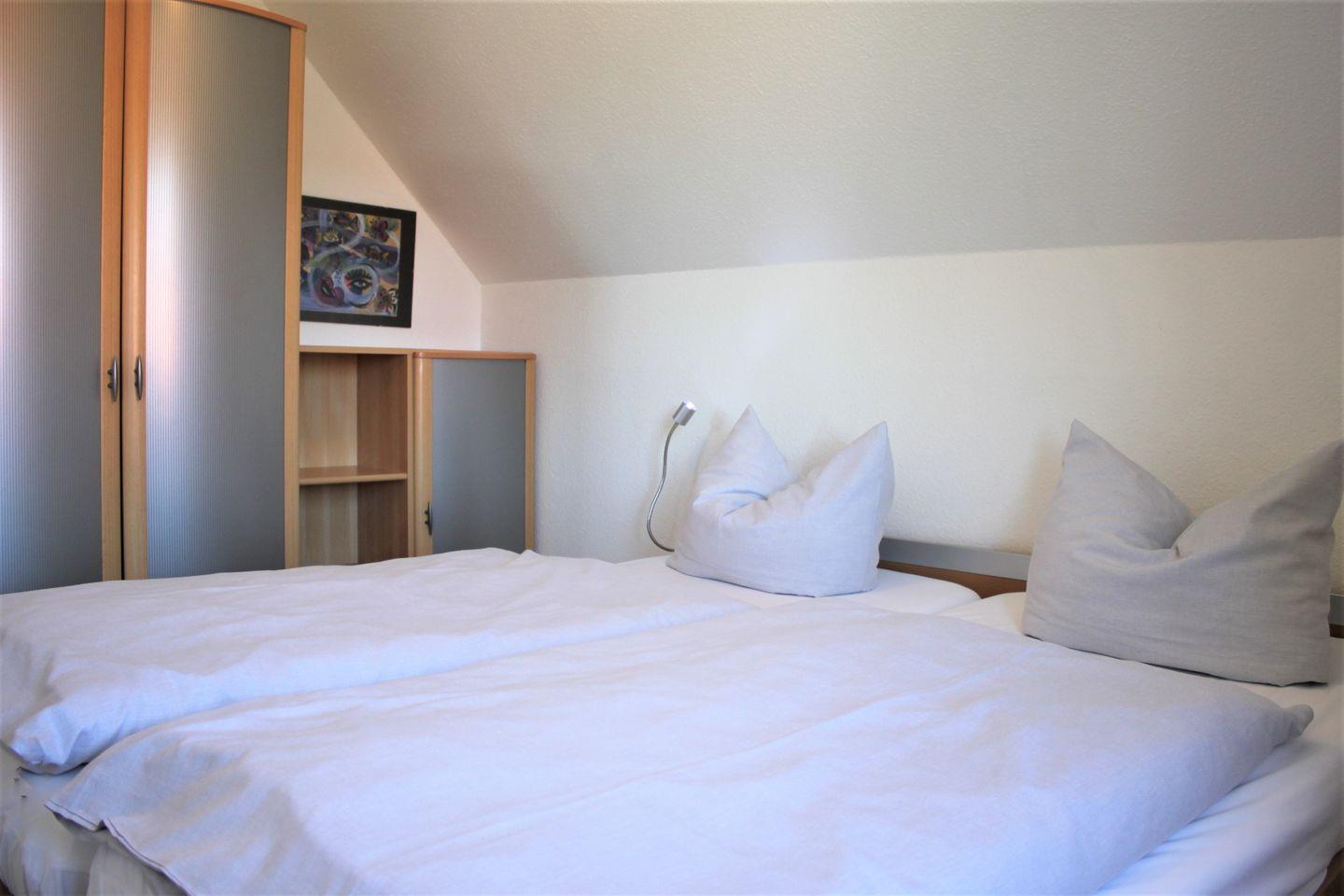 Beide Schlafräume sind jeweils mit einem Doppelbett und Kleiderschrank möbliert und ermöglichen Ihnen durch die vorhandenen Rollläden und Fliegengitter ausreichend Verdunklungsmöglichkeit und einen erholsamen Schlaf. Das Badezimmer, ebenfalls mit Tageslicht, verfügt über eine Dusche, einen Waschtisch, einen Föhn und WC.
