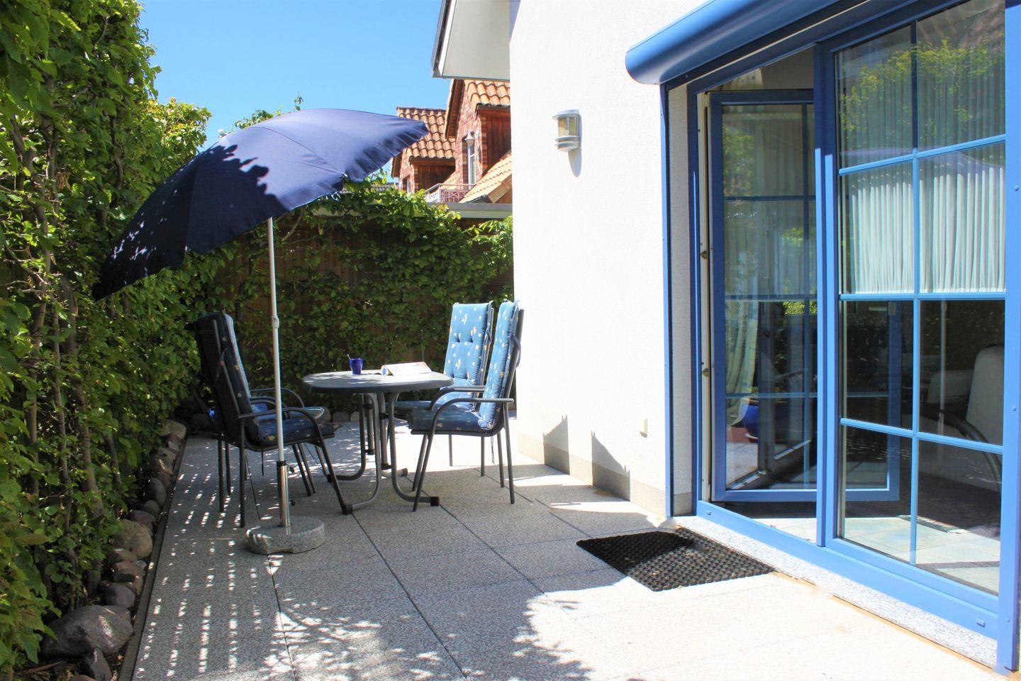 Über den großzügigen Eingangsbereich erreichen Sie den kombinierten Wohn- und Essbereich mit Zugang zu der möblierten Terrasse. Der Wohnbereich ist mit einer komfortablen Sofaecke und einem Flachbild-TV ausgestattet und lädt zu geselligen Stunden ein. Für die kühleren Tage sorgt die Fußbodenheizung im Erdgeschoss für angenehme Wärme und Wohlfühlatmosphäre.