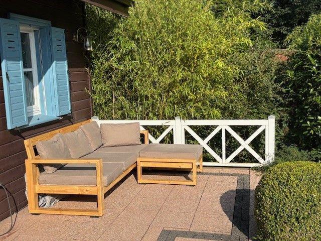 Auf der angrenzenden möblierten Terrasse mit großem Garten und Grill genießen Sie die Ruhe und könne die Seele baumeln lassen.