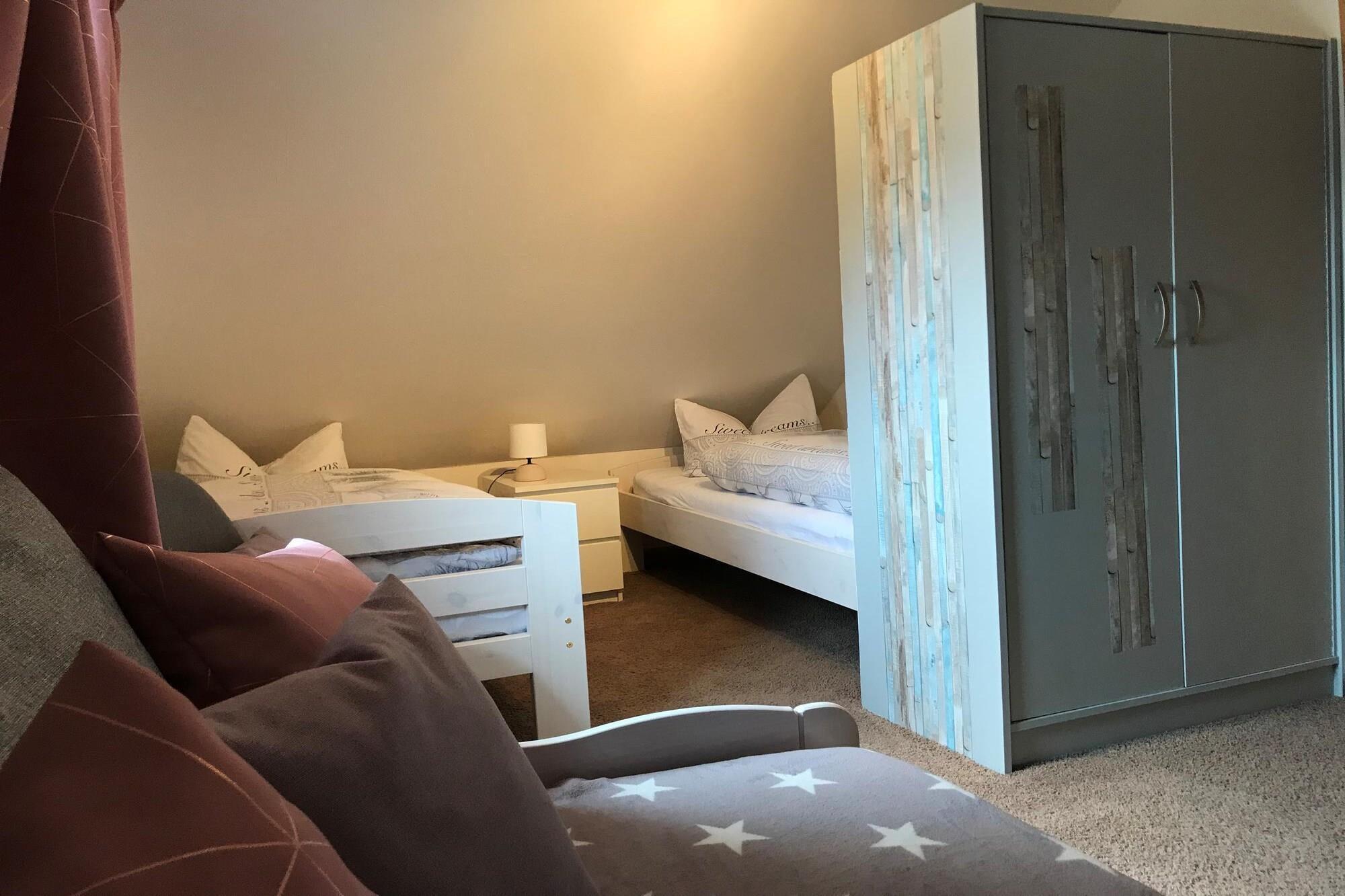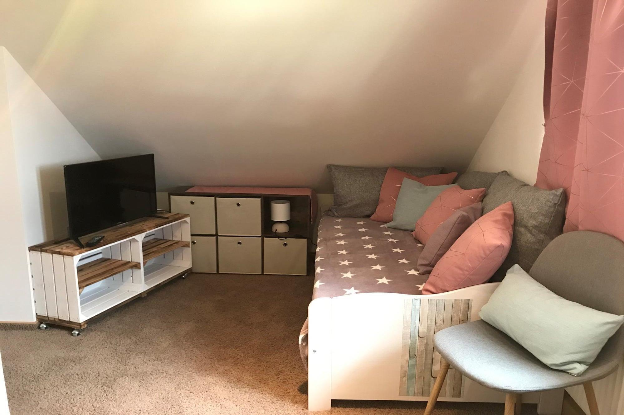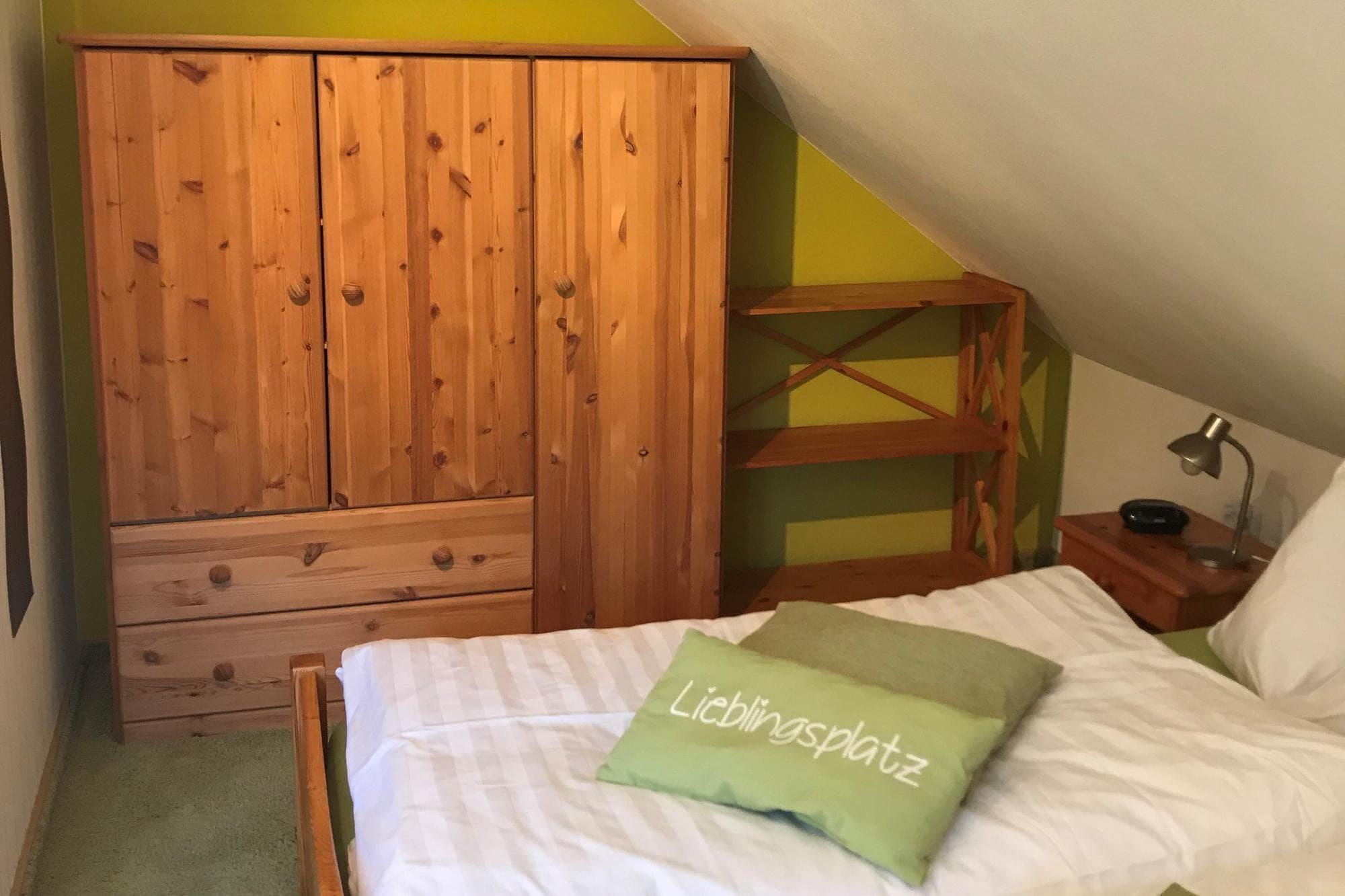 Bort fra stress og hverdagsliv vil du finne en atmosfære av hyggelig komfort og ro i dette feriehuset på bakken. Fra balkongen har du en fantastisk panoramautsikt over Rhön-fjellene. Bak huset på terrassen kan du nyte kveldssolen med utsikt over skogkanten og sikkert starte en koselig grillkveld. Kaltensundheim ligger i en høyde av 460 meter over havet, ca 15 kilometer fra Meiningen. Karakteristiske fjell er Hemschenberg i sørøst, Alte Mark i sør og Leichelberg i øst. Det vakre bybildet er preget av de mange bindingsverkshusene, spesielt bakeriet fra 1704 er verdt et besøk. Her ligger nå et landsbymuseum som gir informasjon om lokalhistorie og DDRs historie. Aktiviteter i nærheten: Aktiver deg og utforsk de ulike rundvandringene rundt Kaltensundheim. Igjen og igjen kommer du over vakker utsikt fra toppen av de omkringliggende fjellene. Utflukter til Meiningen - også med buss - anbefales. Meiningen er en viktig by for kunst og teater. Her kan du besøke Kunsthaus og Elisabethenburg-palasset. Og selvfølgelig er Rhön også kjent for sin ølbryggekunst: Enten toppgjæret eller grumsete hvitt øl, floral pilsner eller mørk kastanjebrun med et kremet skumlag - mange familiebedrifter med regionale røtter overbeviser med den tradisjonelle bryggekunsten Mobility : Ikke egnet for bevegelseshemmede