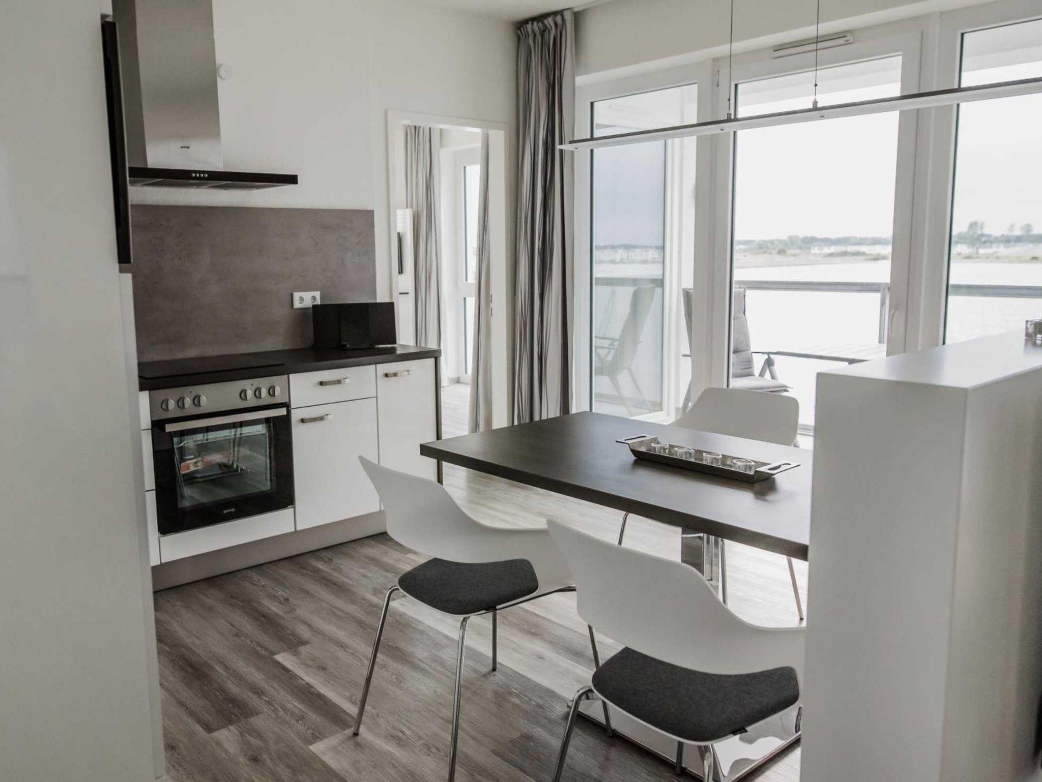 Die Residenz Bollwark beherbergt 26 hervorragend ausgestattete Wohneinheiten. In den Zwei- und Dreizimmerappartements fühlen sich erholungsuchende Paare ebenso wohl wie Familien mit Kindern, die erlebnisreiche Tage am Meer verbringen möchten. Alle Wohnungen verfügen über einen privaten Balkon, eine Terrasse oder Loggia: Dort lassen die Feriengäste den Tag nah dran am Geschehen auf dem Wasser entspannt mit einer Tasse Kaffee beginnen oder abends bei einem Glas Rotwein Revue passieren. Für das Interieur der hellen und großzügig geschnittenen Wohneinheiten waren erfahrene Inneneinrichtungsspezialisten verantwortlich.