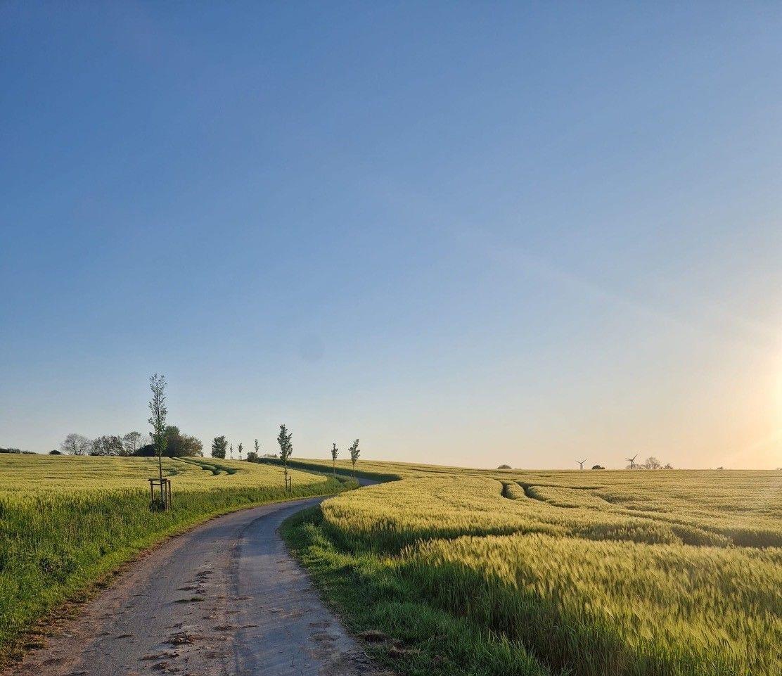 Das Meierhus liegt in Feldrandlage mit Blick über die Felder bis hin zur Schleimündung (in der Ferne). Damit Sie schnellstmöglich zur Ostsee kommen, können Sie gemütlich den Ossenrüher Hof überqueren und den Feldweg nutzen um ans Meer zu kommen.
