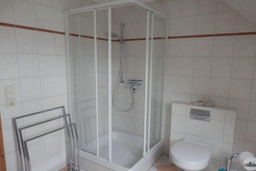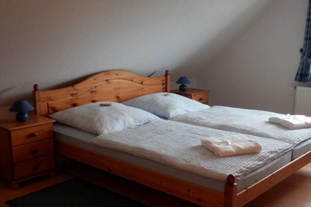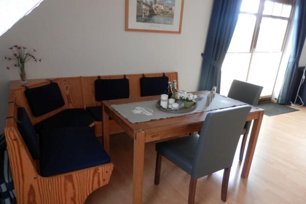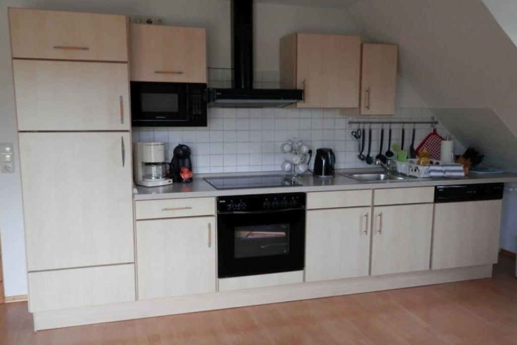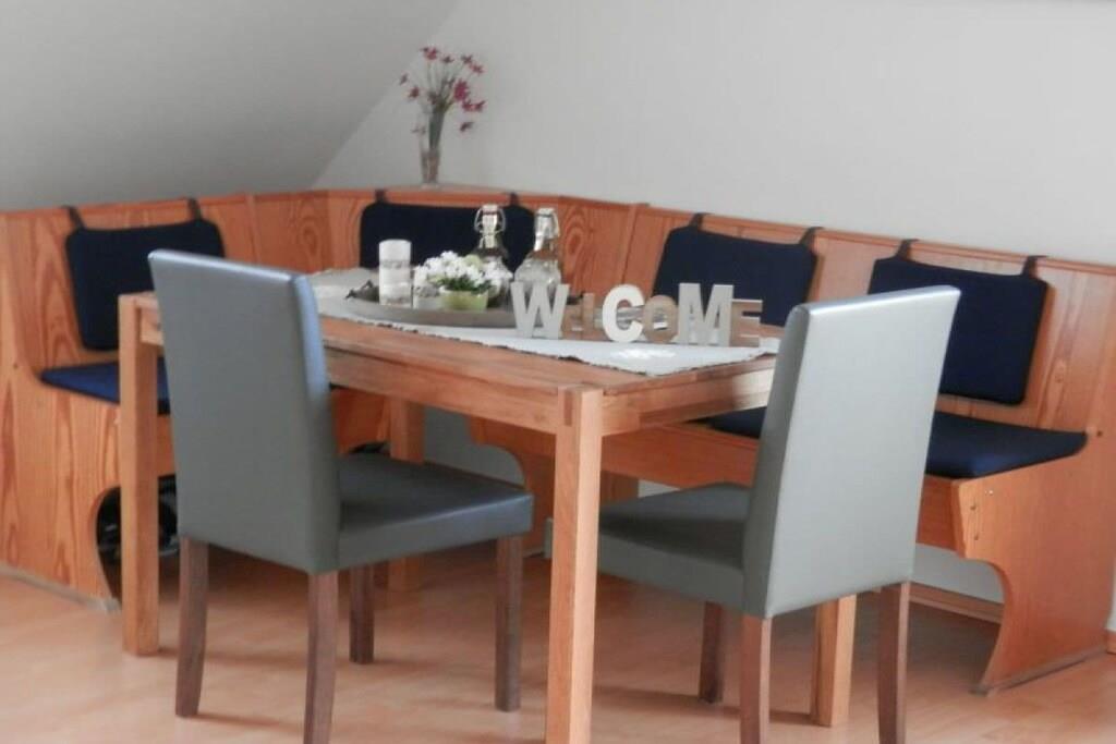 Unsere gemütlich eingerichtete Ferienwohnung ist 75 m² groß und hat einen großen Balkon zur Südseite. Sie können hier ab Mittags bis zum Sonnenuntergang die Sonne mit Ausblick in den ruhigen Garten genießen. Unsere Ferienwohnung befindet sich auf der 1. Etage und besteht aus einem großen hellen Wohnraum, ausgestattet mit Sitzecke, Wohnzimmertisch, Flat-TV und Stereoanlage, einer Küche mit Essecke, die u.a. mit Geschirrspüler, Mikrowelle und Backofen ausgestattet ist. Darüber hinaus gibt es 2 Schlafzimmer (ein großes Zimmer mit Doppelbett, Schreibtisch und einem kleinen Flat-TV und ein kleines Zimmer mit 2 Einzelbetten), Dusche/WC, Waschmaschine, W-Lan und Kabel-TV. Kinderbett, Kinderhochstuhl etc. auf Anfrage