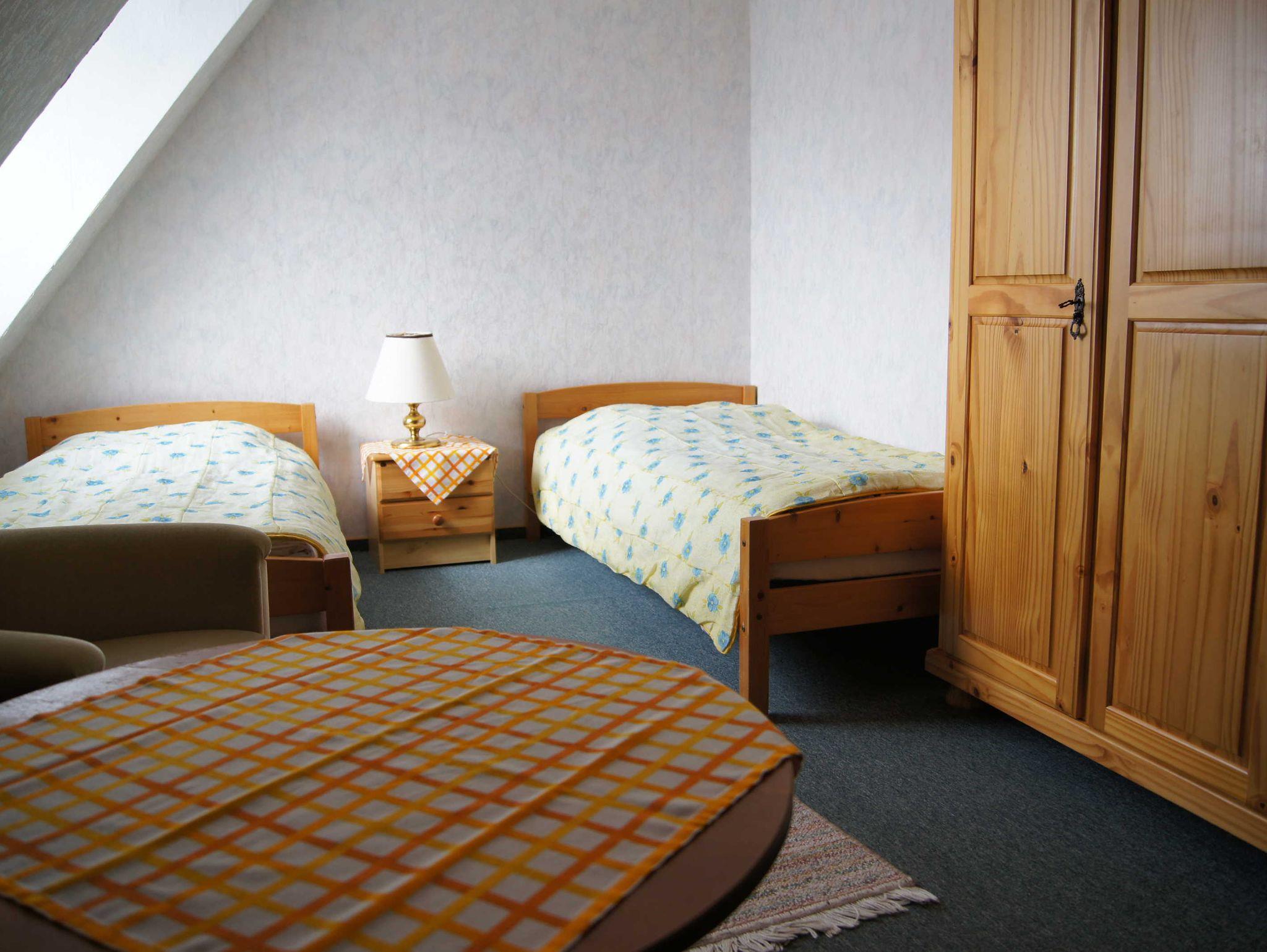 Die Unterkunft beinhaltet einen Wohnraum mit Sitzecke und mit separatem Esstisch, eine kleine Einbauküche, ein Schlafraum mit Doppelbett, ein Schlafraum mit zwei Einzelbetten sowie einer zusätzlichen Schlafmöglichkeit und ein Duschbad/WC. Bei Belegung mit 5. Pers. wird ein Aufschlag von Euro 10,00/Tag berechnet