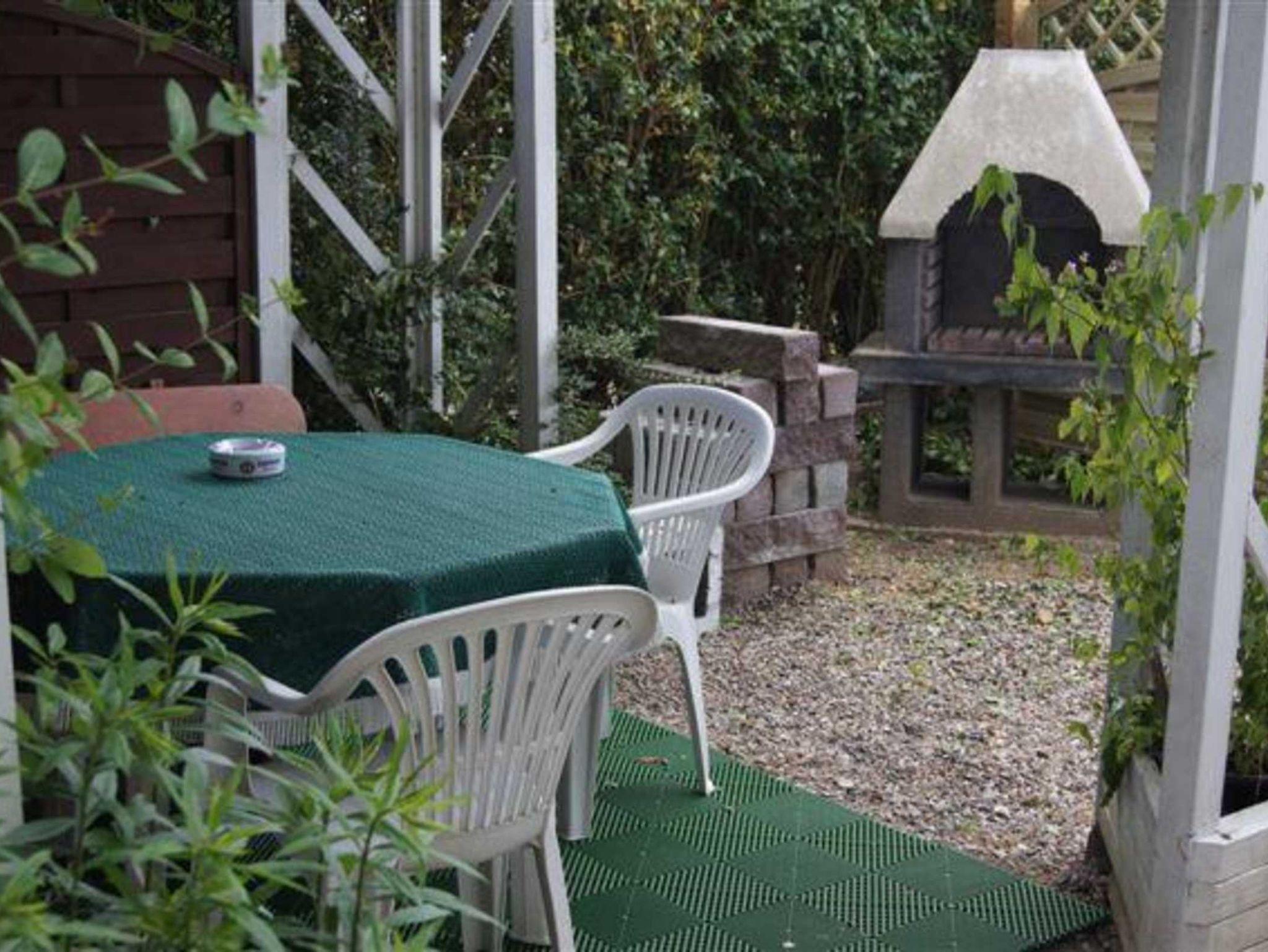 Ferienwohnungen Parterre mit Terrasse, für die Etagenwohnungen stehen Sitzgruppen auf dem Grundstück sowie ein Pavillon und Grill zur Verfügung.