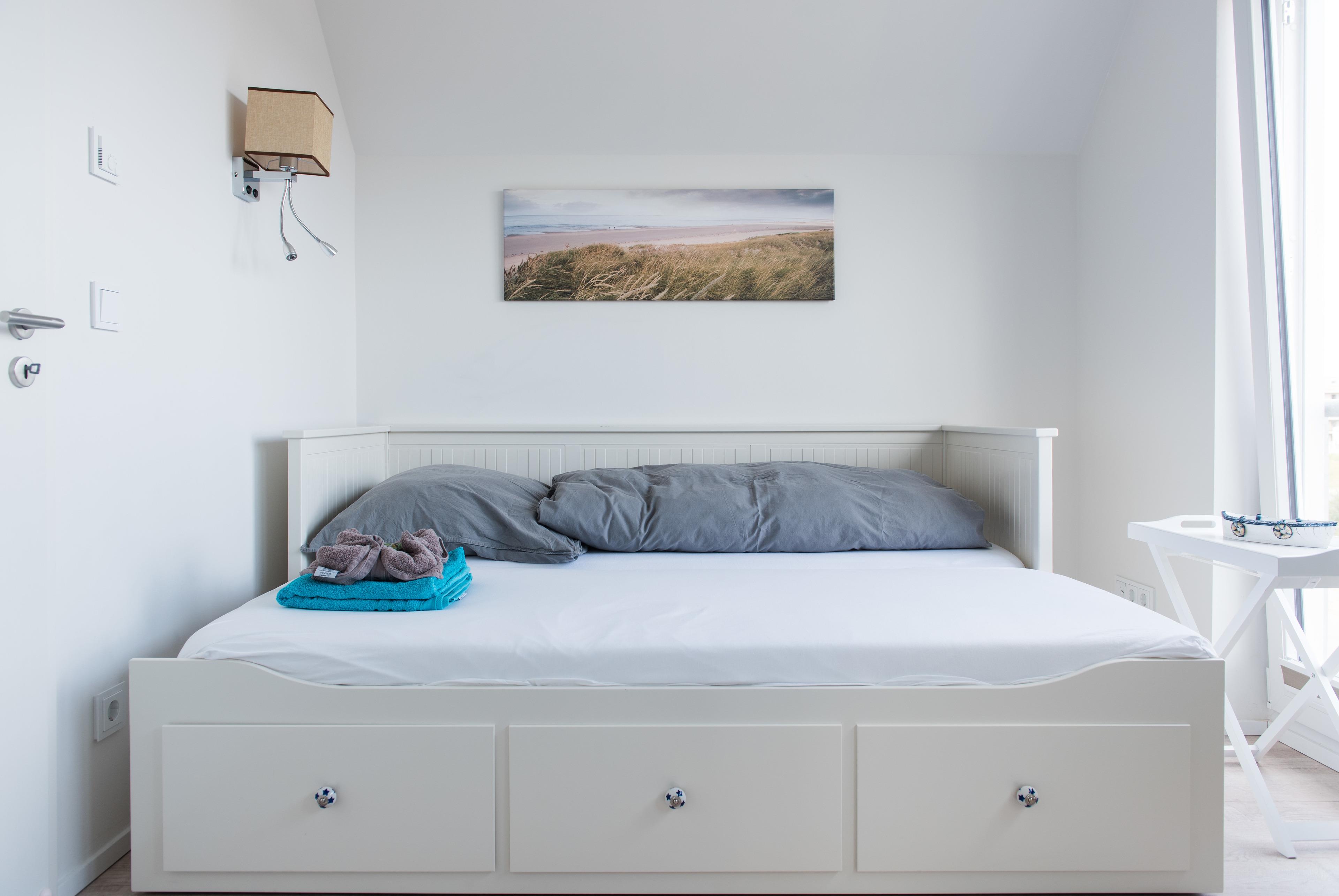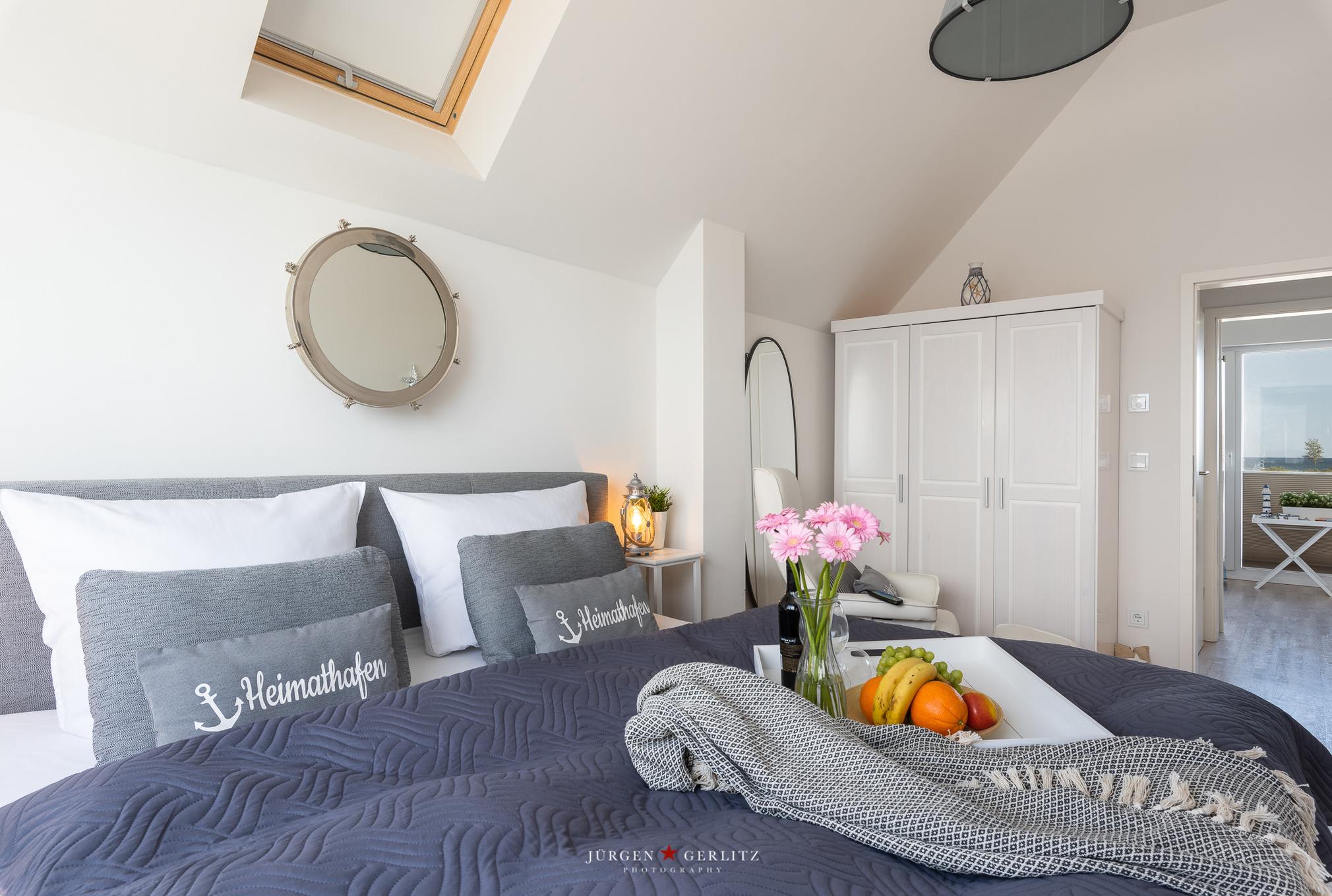 Zwei Schlafzimmer in der oberen Wohnebene bieten bis zu fünf Erwachsenen Platz zum Schlafen bei schönstem Wasserblick.