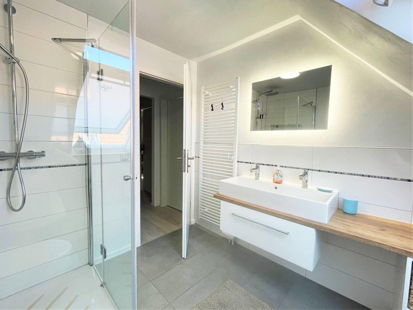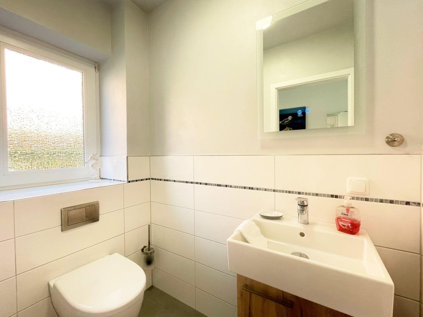 Ein WC im Erdgeschoss, sowie ein großes Badezimmer mit Dusche und Doppelwaschtisch im 1. Stock runden dieses schöne Ferienhaus ab.