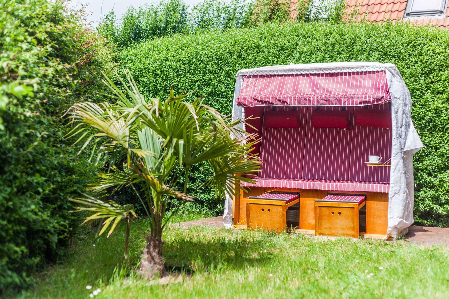 Der Außenbereich besteht aus einem kleinen Garten, der genügend Privatsphäre bietet. Auf der möblierten Terrasse können Sie grillen.