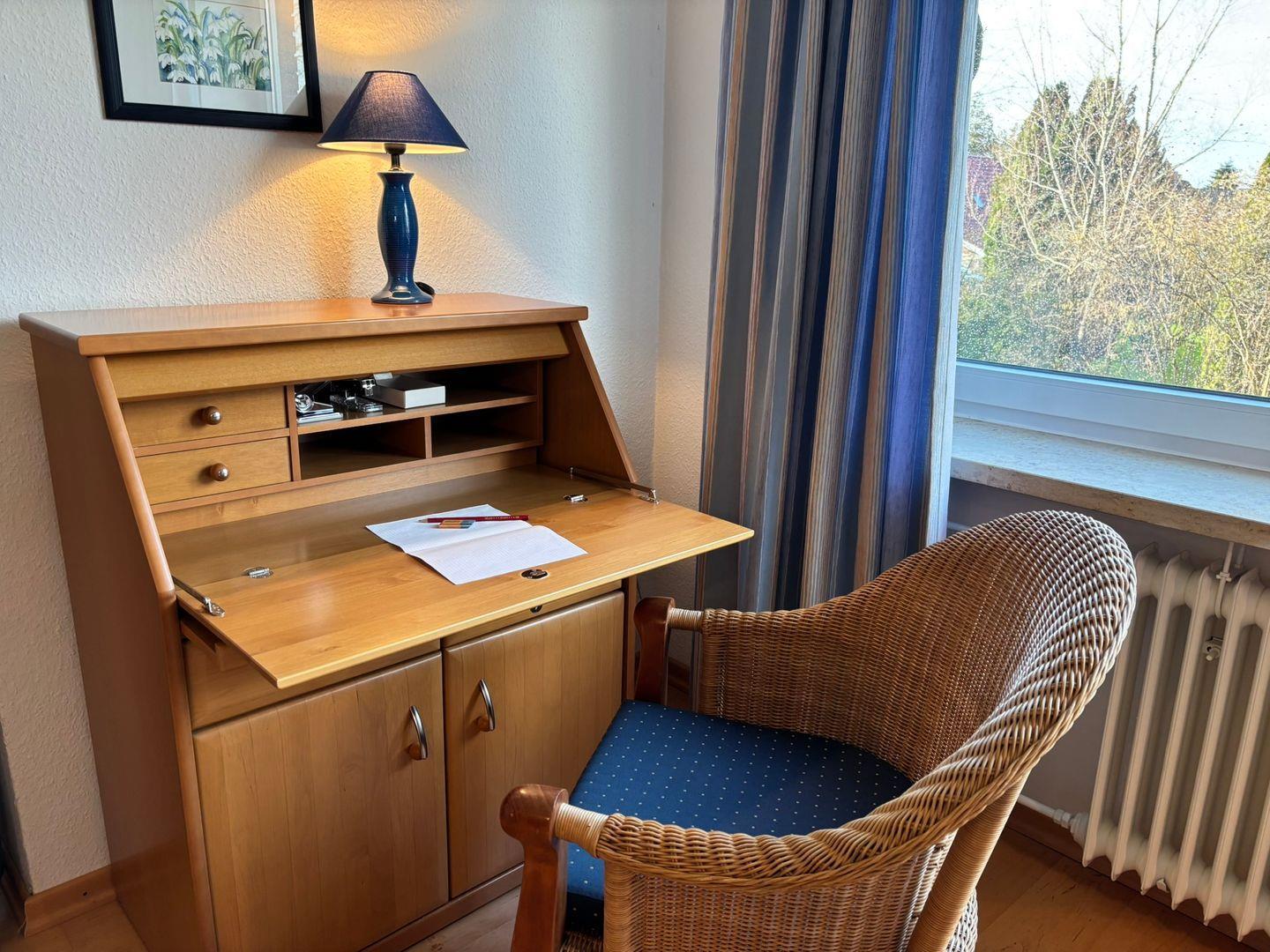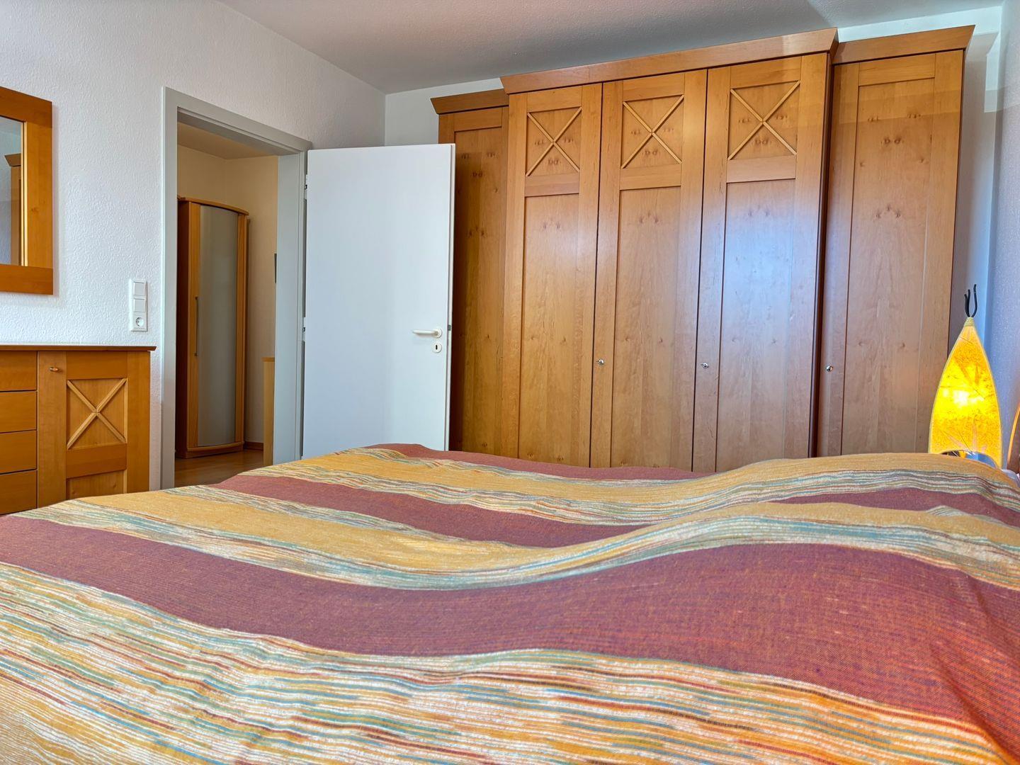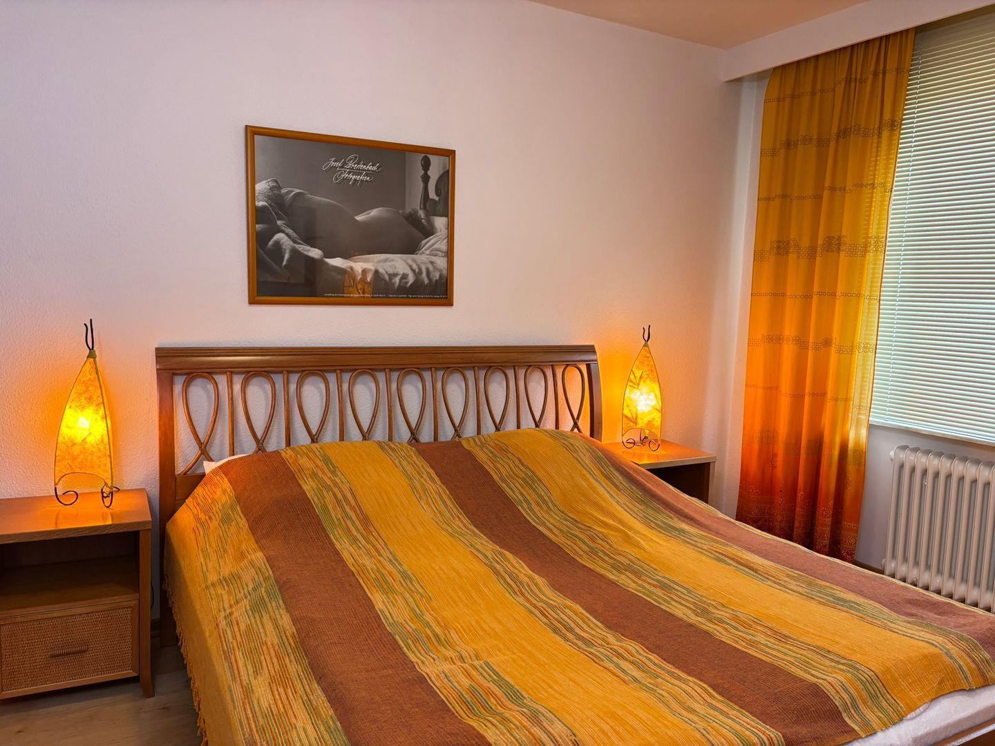 Das Schlafzimmer verfügt über ein Doppelbett (180x200 cm) mit getrennten Matratzen und einem offenen Fußende, sowie einen Kleiderschrank und Verdunklungsmöglichkeiten für erholsame Nächte. Im Badezimmer erwarten Sie eine Eckbadewanne, eine Waschmaschine zur Eigennutzung sowie die üblichen Annehmlichkeiten wie WC, Haartrockner und Waschbecken.