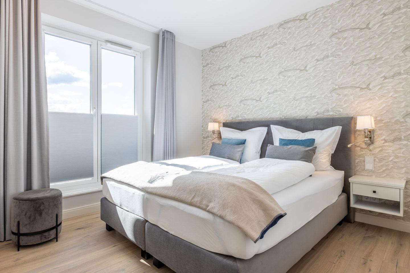 Die Fünf-Sterne Wohnung "Strandwelle" liegt im 3. Obergeschoss des Speicherquartierts, in unmittelbarer Nähe zu Kappelns Museumshafen und zum Ortskern mit traumhaftem Blick über die Schlei.