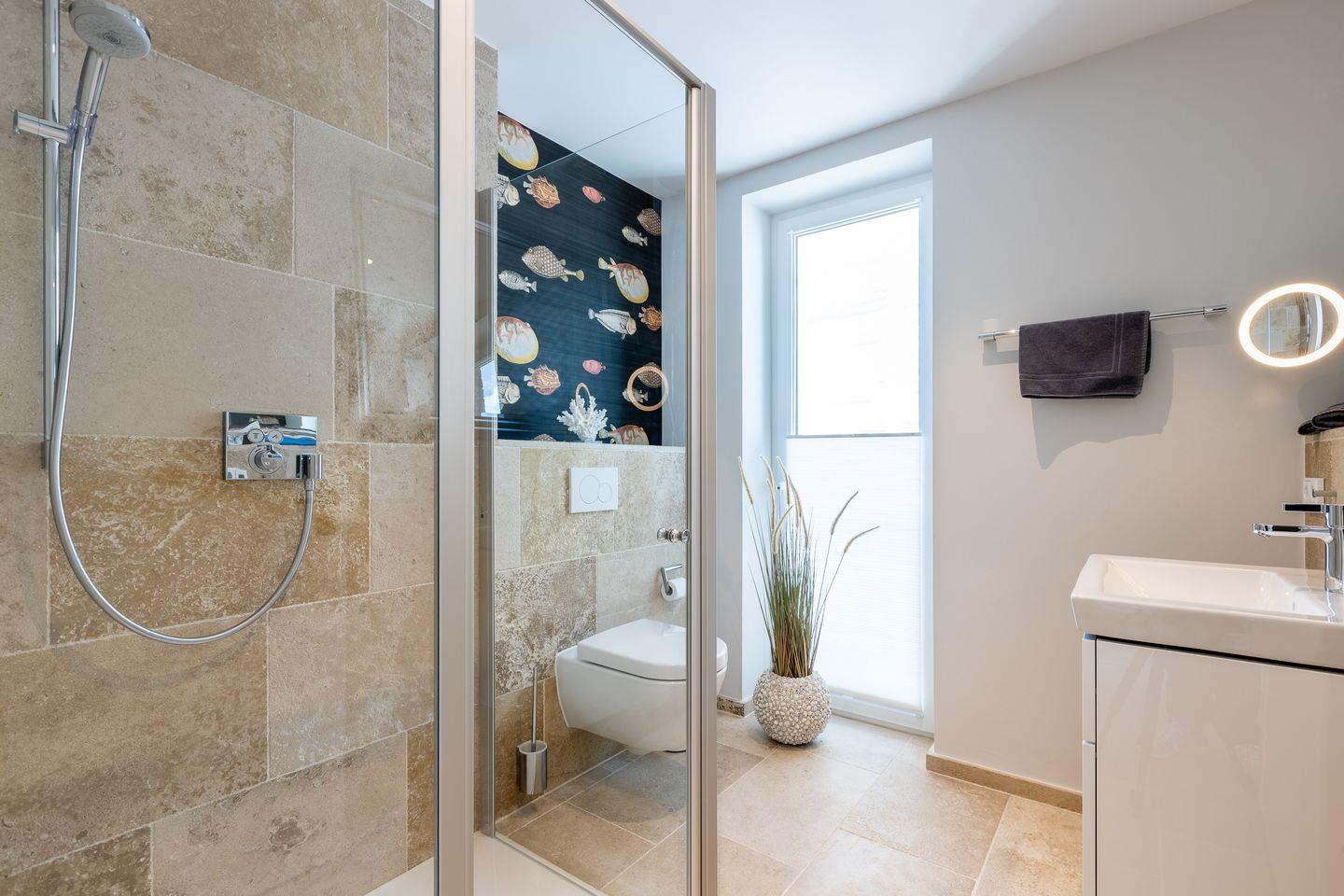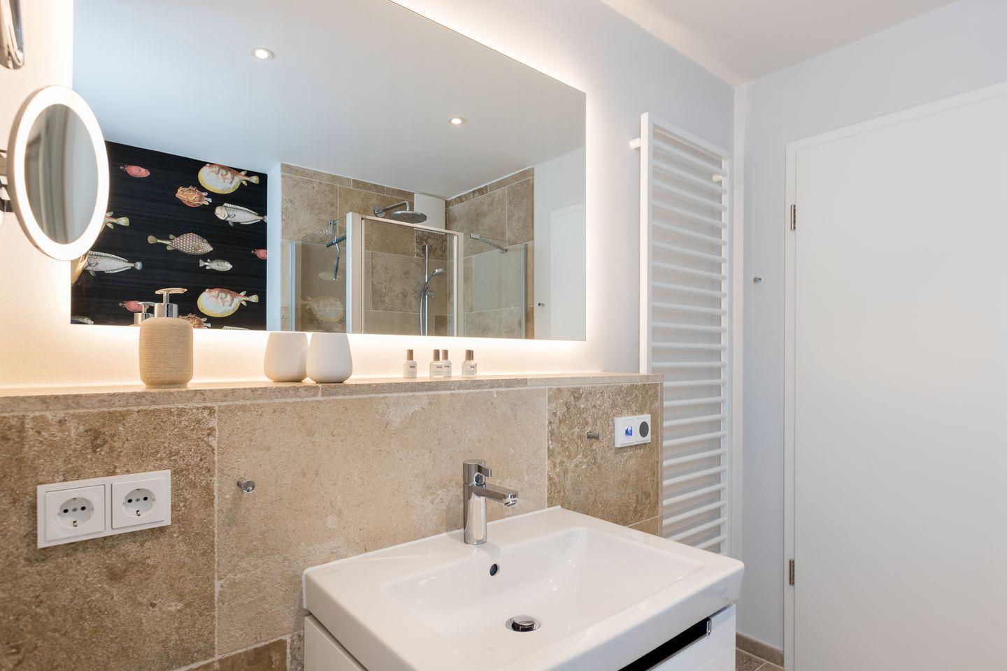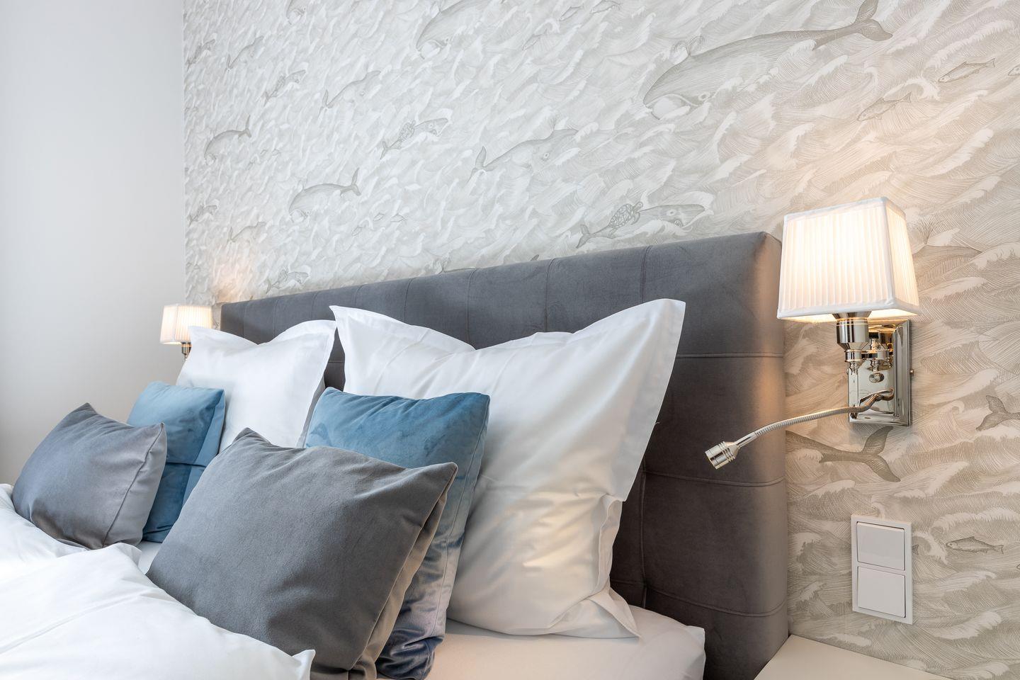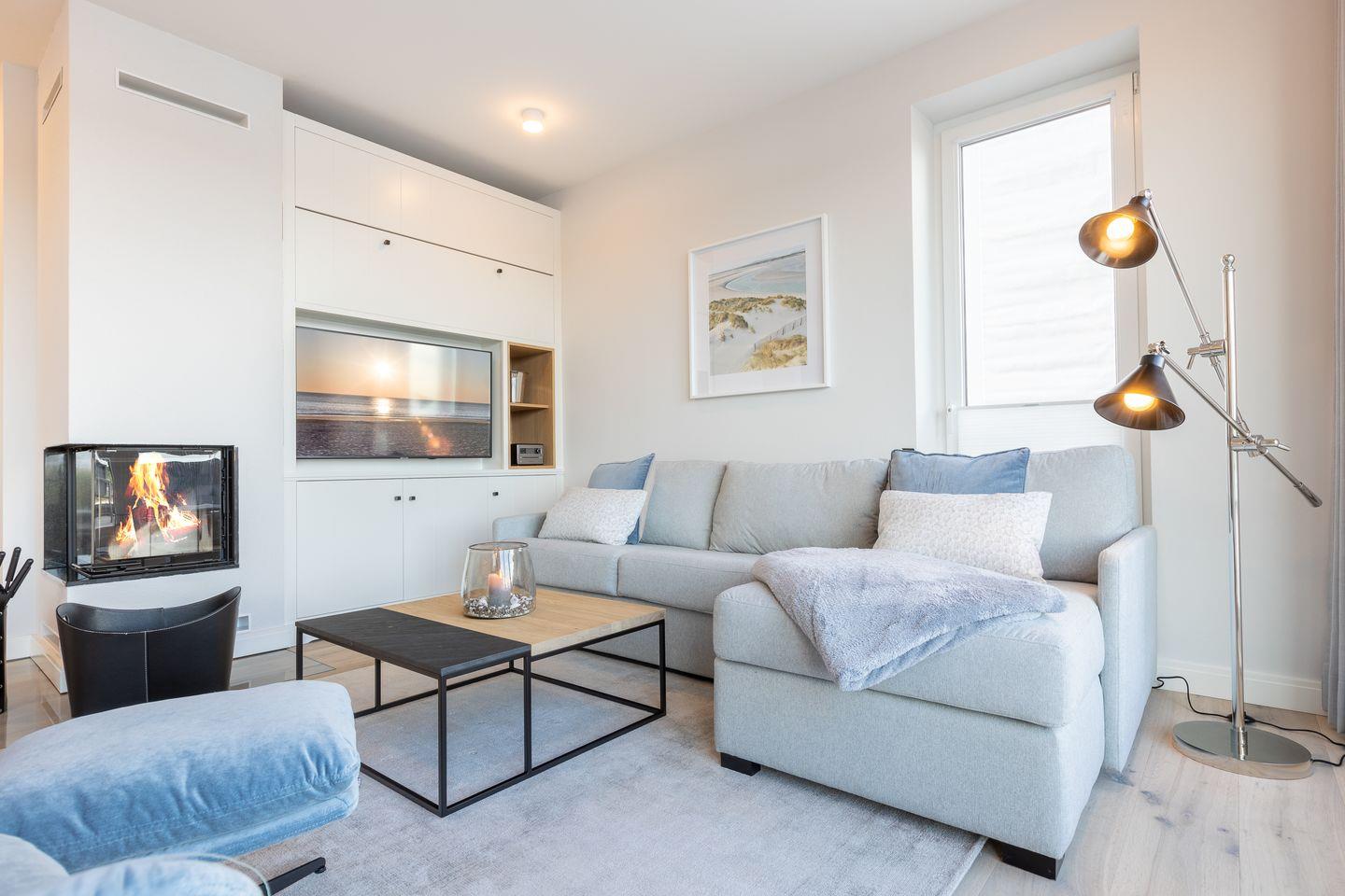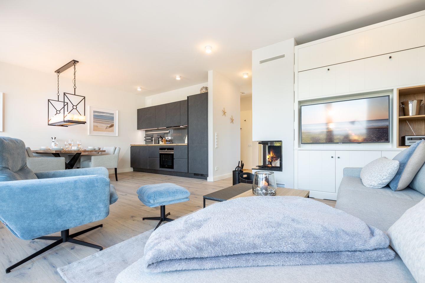 Das Penthouse-Apartment besticht durch Liebe zum exquisiten Detail: u.a. Echtholzparkett, maßgefertigte Einbaumöbel und Designtapeten. Zwei Smart TV-Geräte, zwei Klimaanlagen (Wohnbereich und Schlafzimmer) und ein geschlossener Kamin komplettieren die luxuriöse Ausstattung. Im Bad fällt Tageslicht auf die Natursteinfliesen.
