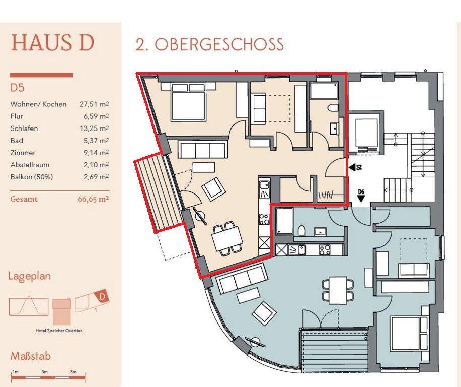 Die 67qm Wohnung liegt im 2. Obergeschoss des Hauses und verfügt über drei Zimmer.