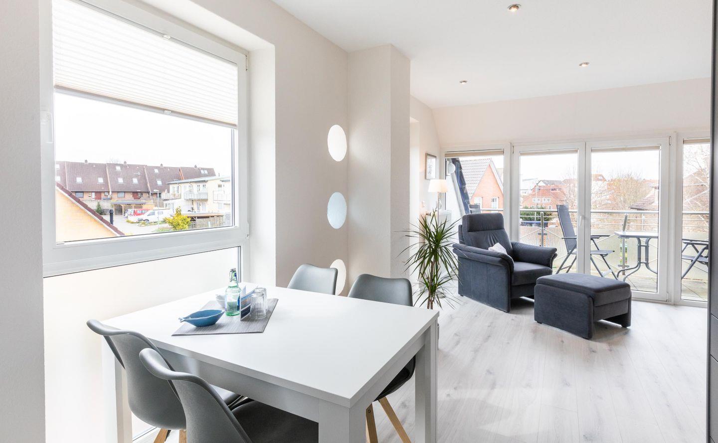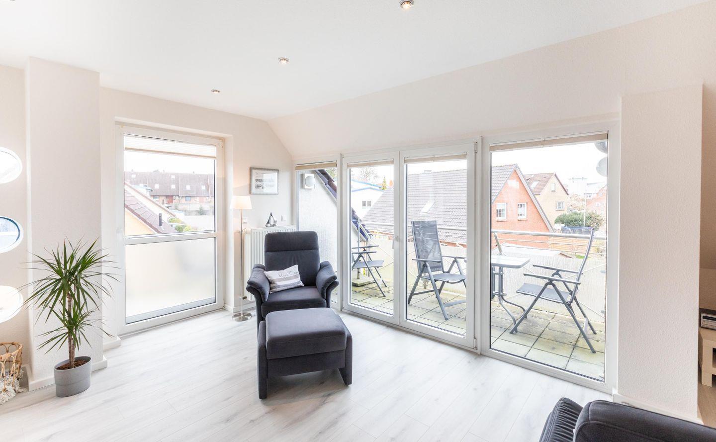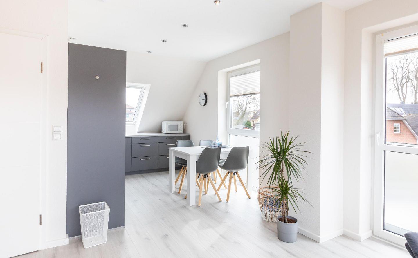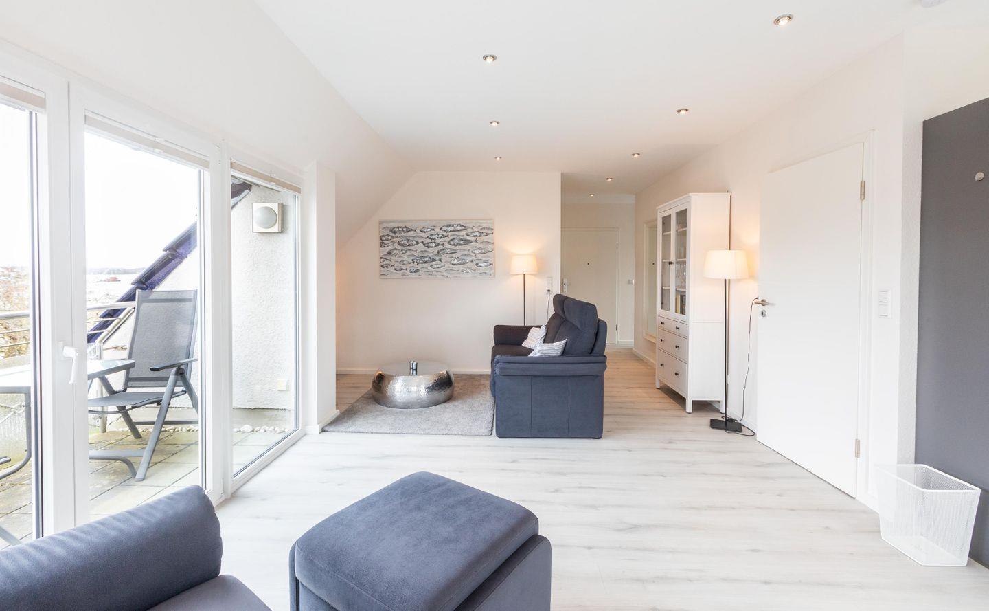 Die Wohnung „Hafen im Blick“ punktet nicht nur mit einer modernen und geschmackvollen Einrichtung, sondern auch mit einem schönen seitlichen Blick vom Balkon auf die Schlei (eingeschränkter Wasserblick) sowie den Kappelner Hafen. Sie befindet sich im 2. Obergeschoss eines Mehrparteienhauses über zwei Arztpraxen und verfügt über einen hellen, freundlichen Wohnbereich mit angrenzender offener Küche und Essbereich sowie Zugang zu zwei Balkonen. Für die Nachtruhe stehen unseren Urlaubsgästen zwei Schlafzimmer zur Verfügung, die jeweils mit Boxspringbetten (180x200cm) ausgestattet sind. Es ist ein großes Badezimmer mit Dusche, Badewanne und Waschbecken vorhanden und zusätzlich steht ein Gäste-WC zur Verfügung.