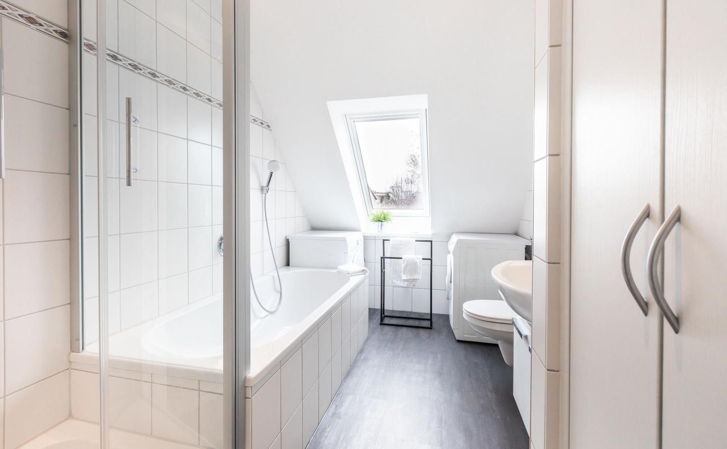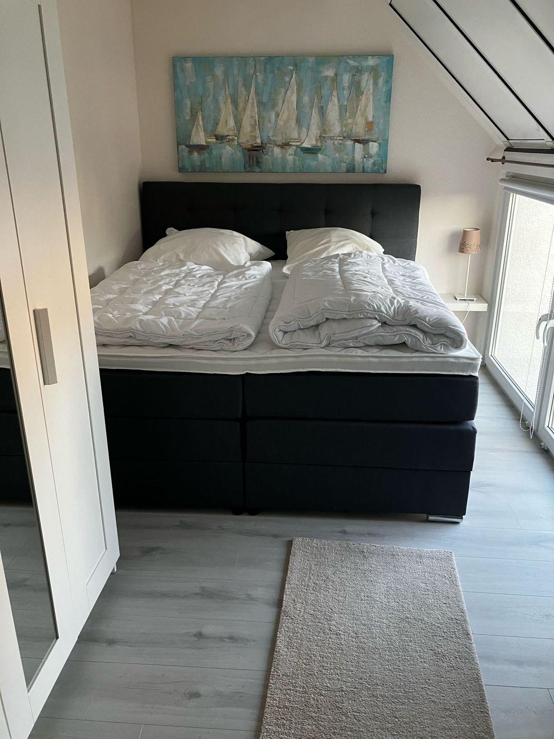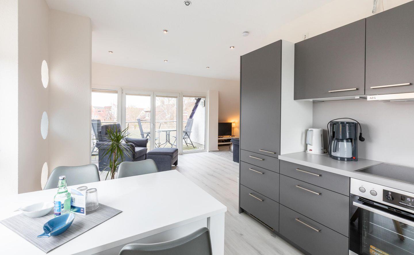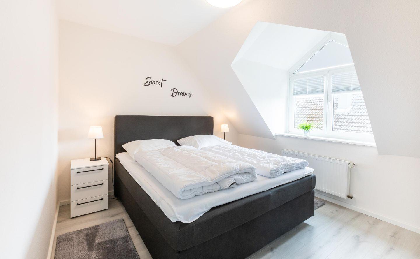 Die Wohnung „Hafen im Blick“ punktet nicht nur mit einer modernen und geschmackvollen Einrichtung, sondern auch mit einem schönen seitlichen Blick vom Balkon auf die Schlei (eingeschränkter Wasserblick) sowie den Kappelner Hafen. Sie befindet sich im 2. Obergeschoss eines Mehrparteienhauses über zwei Arztpraxen und verfügt über einen hellen, freundlichen Wohnbereich mit angrenzender offener Küche und Essbereich sowie Zugang zu zwei Balkonen. Für die Nachtruhe stehen unseren Urlaubsgästen zwei Schlafzimmer zur Verfügung, die jeweils mit Boxspringbetten (180x200cm) ausgestattet sind. Es ist ein großes Badezimmer mit Dusche, Badewanne und Waschbecken vorhanden und zusätzlich steht ein Gäste-WC zur Verfügung.