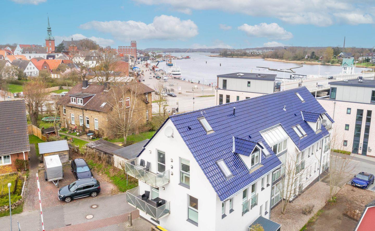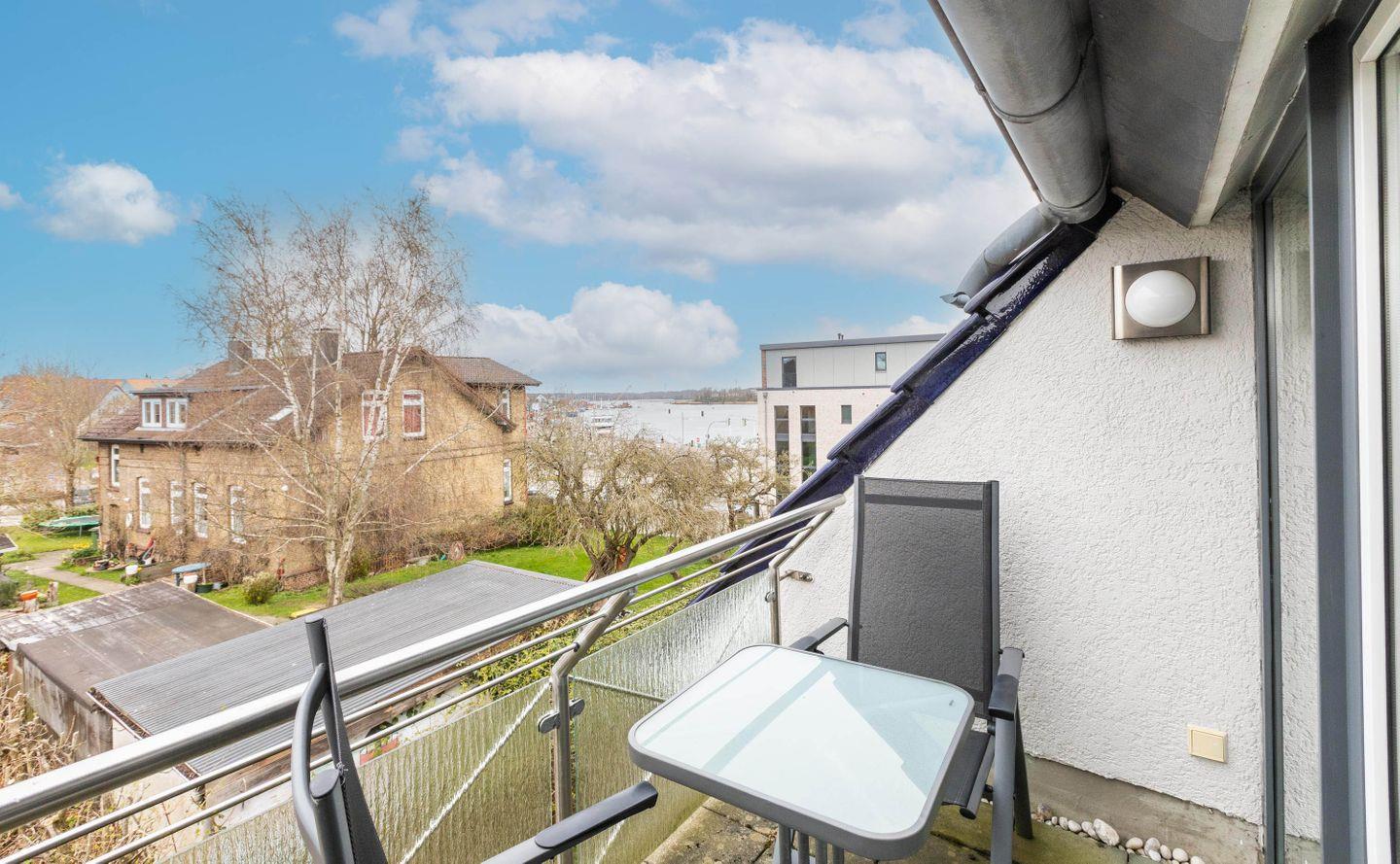 Kuschelige Nichtraucher-Ferienwohnung an der Schlei für Familien und zusammen reisende Paare mit zwei Balkonen im 2. Obergeschoss eines Mehrparteienhauses in zentraler Lage zum Hafen der Schleistadt Kappeln und seitlichem Blick auf die Schlei. In wenigen Minuten sind die nächsten Restaurants und Geschäfte zu Fuß zu erreichen.