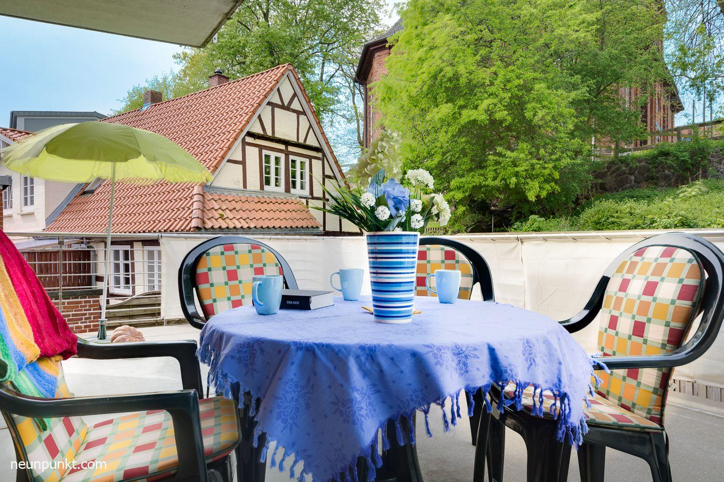 Traumhafter Blick auf die malerische Altstadt von Kappeln bietet Ihnen der schöne möblierte Balkon.