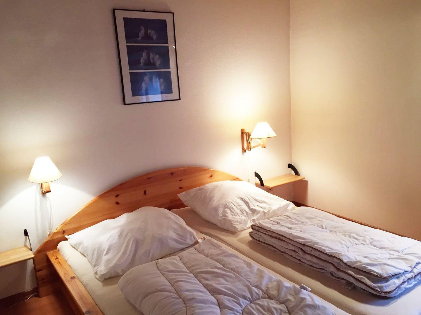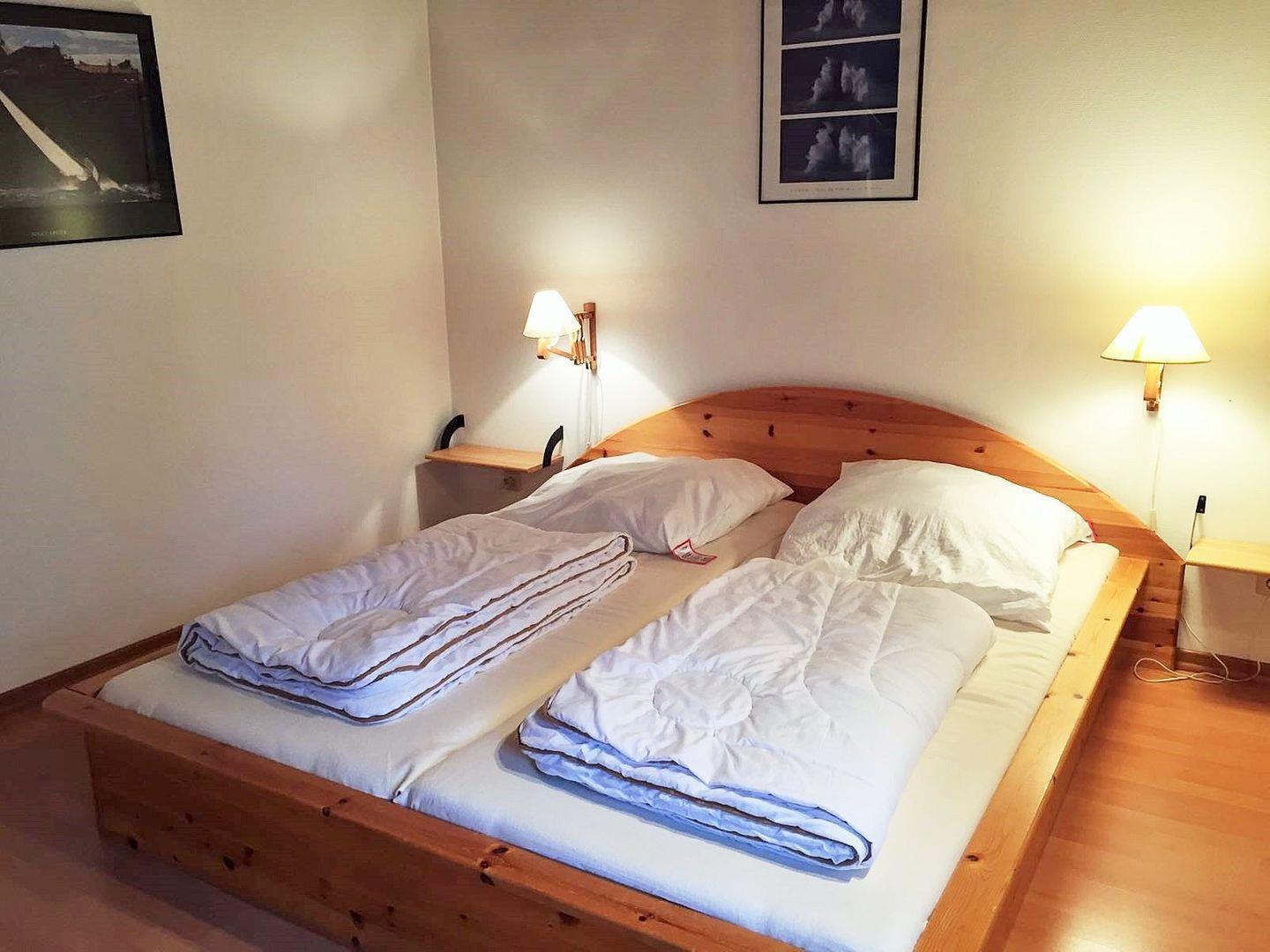 Der Wohnbereich verfügt über eine schöne Sitzecke, einen Esstisch und eine integrierte Küchenzeile. Die Küchenzeile bietet Ihnen alles, was Sie in Ihrem Urlaub benötigen. Es befinden sich zwei Schlafzimmer in der Ferienwohnung, eins mit einem Doppelbett und das andere mit zwei Einzelbetten. Das Badezimmer ist mit einer Dusche ausgestattet.