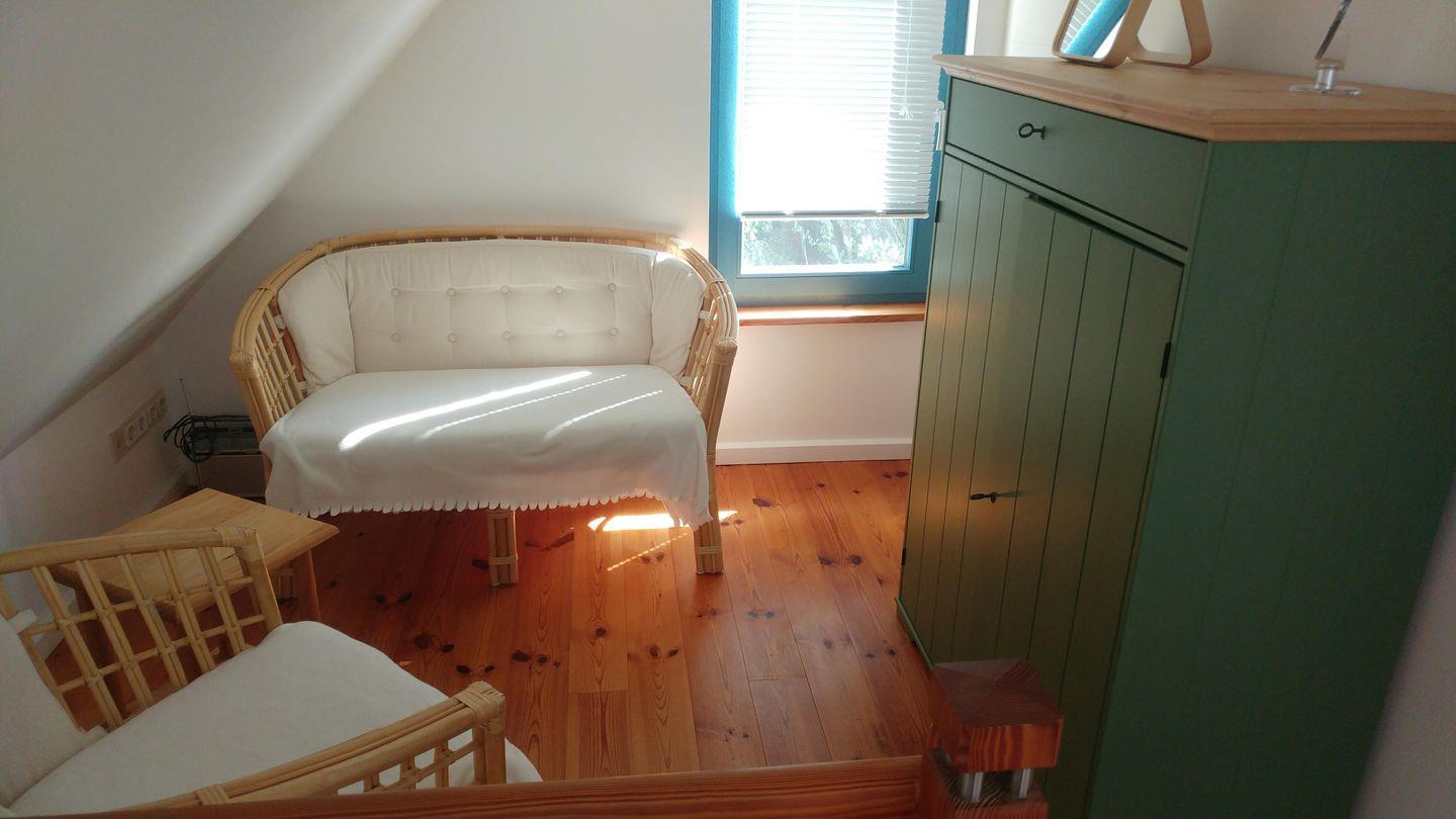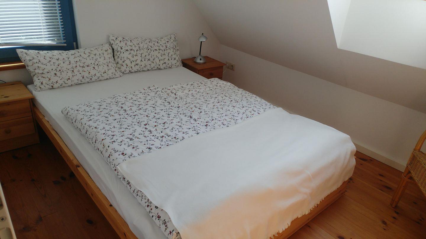 Es verfügt über insgesamt drei Schlafzimmer, wovon sich zwei im Erdgeschoss und eines im Obergeschoss befinden. Ebenfalls im Obergeschoss gibt es eine offene Galerie als gemütlichen Rückzugspunkt zum Entspannen. Auf dem Balkon nach West lassen sich gemütliche Abende bei einem Glas Wein und den entspannenden Geräuschen des angrenzenden Wäldchens und der nahen Schlei verbringen.
