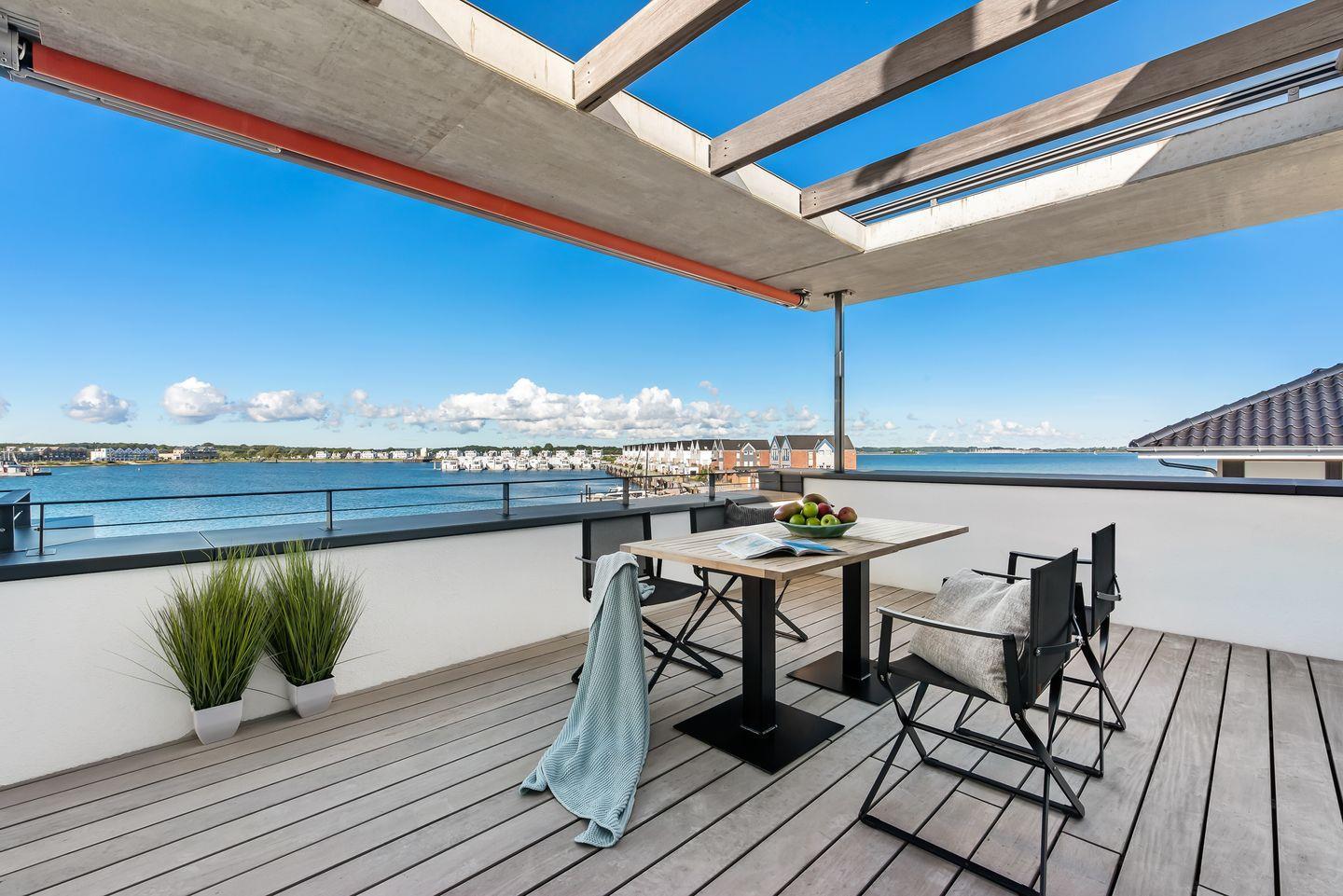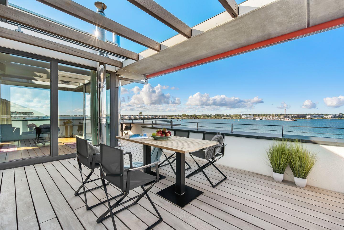 Luxuspenthouse mit Panoramameerblick, Dachterrasse und Kamin direkt an der Ostsee