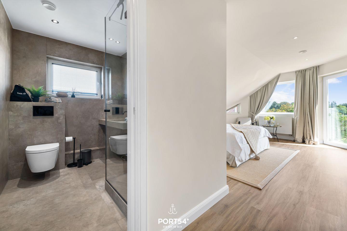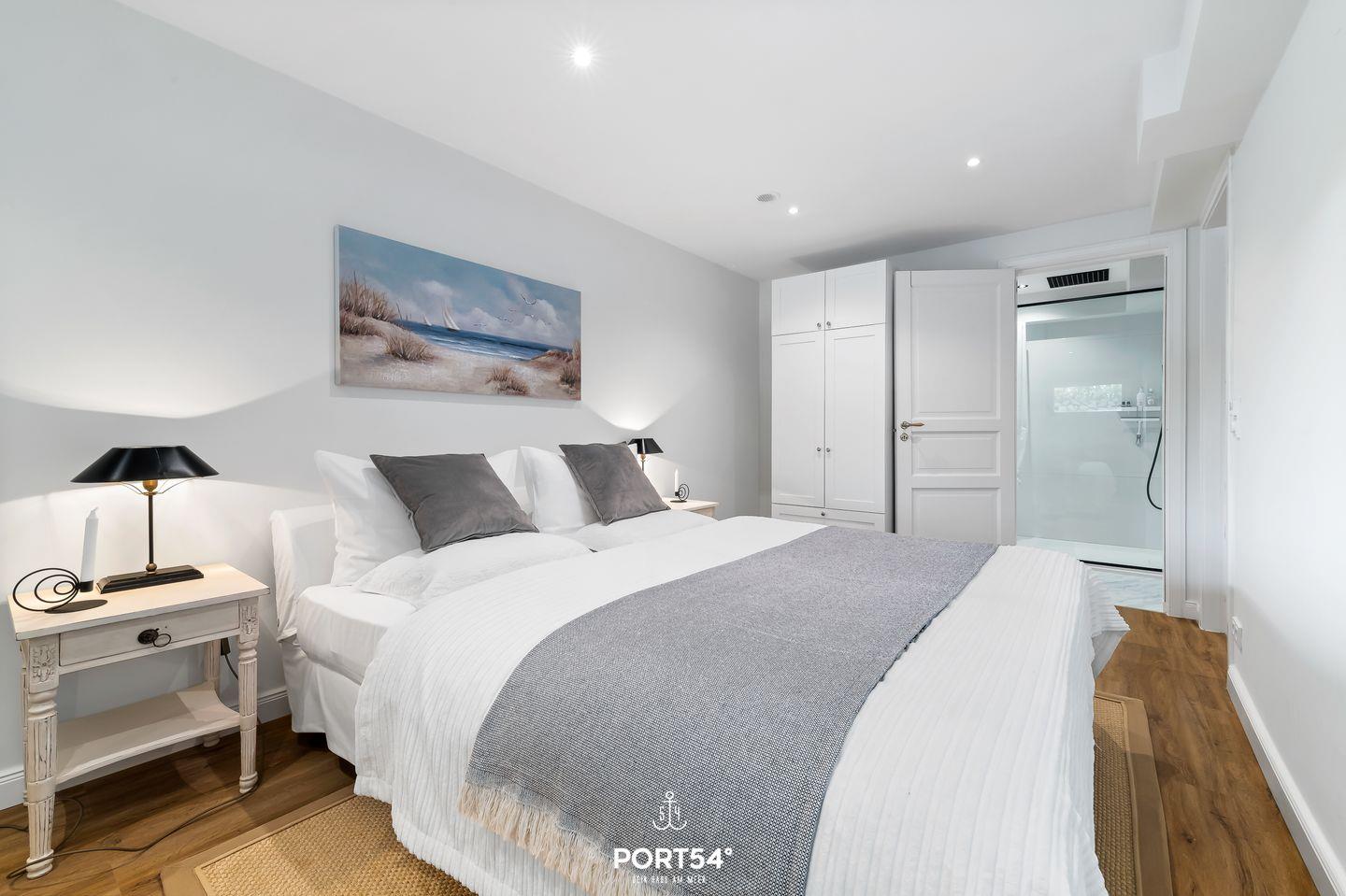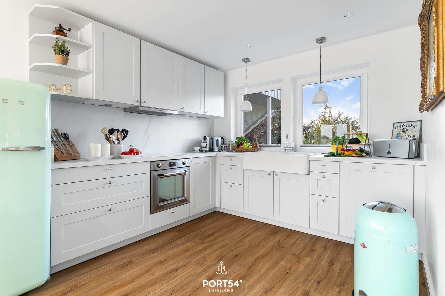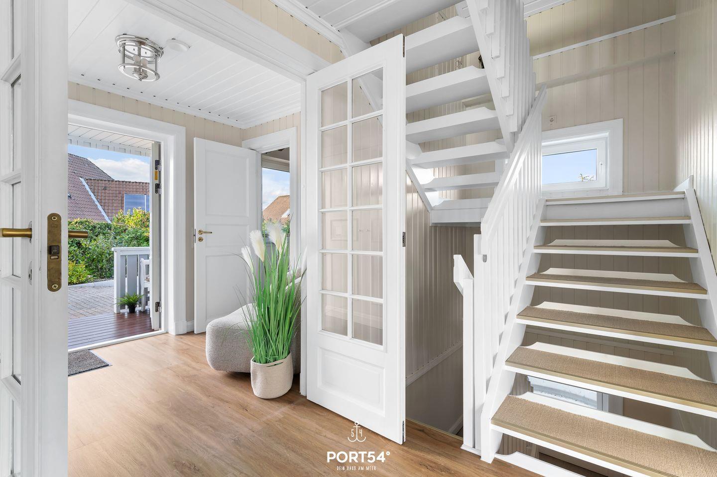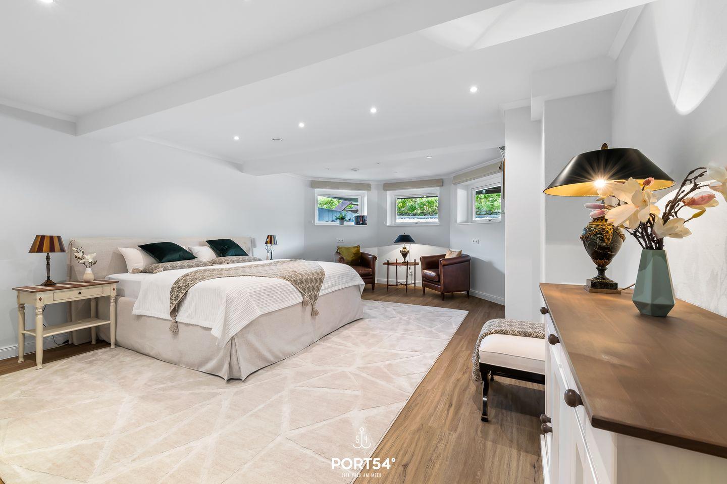 In Sackgassenendlage, nur 30 Meter von der Schlei entfernt, liegt das großzügige und stilvolle Schwedenhaus Breeze 71. Das Ferienhaus bietet auf etwa 180m² Platz für bis zu 8 Personen. Mit einzigartigem Ausblick auf die Schlei ist dieses Haus zu jeder Jahreszeit eine Reise wert. Das Herzstück des Hauses ist das Erdgeschoss mit dem offen gestalteten Wohn- und Essbereich und angrenzender offener Küche. Dieser großzügige Raum ist geschmackvoll eingerichtet und ermöglicht Ihnen einen traumhaften Blick auf die Schlei. Machen Sie es sich auf dem gemütlichen Sofa bequem und lassen Sie sich von einem Film im Flachbild-Fernseher unterhalten. Oder lesen Sie eines der hauseigenen Bücher auf dem komfortablen Sessel. Der zu drei Seiten offener Gas-Kamin sorgt zusätzlich für eine hyggelige Atmosphäre. Die angrenzende offene Küche ist mit alles ausgestattet, was Sie für Ihren Aufenthalt benötigen. Am großen Esstisch können Sie hervorragend gemeinsam essen oder auch lustige Spieleabende mit den hauseigenen Gesellschaftsspielen verbringen. Beim Essbereich befindet sich der Zugang zur möblierten Holzterrasse. Die Terrasse ist nach Süden ausgerichtet und bietet Ihnen einen unvergleichlichen Blick aufs Wasser. Von hier aus gelangen Sie in den Garten, in dem sich eine weitere Terrasse mit einem Strandkorb befindet. Im Souterrain des Ferienhauses laden zwei Schlafzimmer mit jeweils einem Boxspring-Doppelbett (eines in 180x200cm, eines in 160x200cm) zur erholsamen Nachtruhe ein. Eines dieser Schlafzimmer verfügt über ein Duschbad en Suite. Das Gäste-WC finden Sie im Erdgeschoss. Im Obergeschoss erwartet Sie ein Schlafzimmer mit Boxspring-Doppelbett (180x200cm) und ebenfalls einem Duschbad en Suite. Das andere Schlafzimmer ist mit zwei Einzelbetten ausgestattet (90x200cm). Diverse Spielsachen, Bücher und ein gemütlicher Sessel machen dieses Zimmer zu einem wahren Paradies für Kinder. Auch dieses Schlafzimmer verfügt ebenfalls über ein Bad en Suite. Die Badewanne dieses Bades verspricht Entspannung pur. Eine Waschmaschine und ein Trockner stehen Ihnen im Haus zur Verfügung. Für die kleinsten Gäste stehen ein Reisebettchen, zwei Hochstühle und ein Kindertritthocker bereit. Ein Treppenschutzgitter sorgt für Sicherheit. Auch bis zu zwei Fellnasen sind in diesem Haus Herzlich Willkommen. Vor dem Haus befinden sich zwei kostenlose PKW-Stellplätze und eine E-Ladesäule. Nur wenige Meter entfernt befindet sich ein kleiner Weg entlang der Schlei - ideal für einen Spaziergang. Ob stürmische Herbststage oder laue Sommerabende - dieses Haus bietet für jede Jahreszeit den höchsten Komfort.