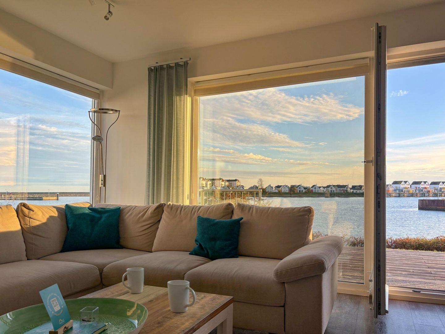 Genießen Sie den traumhaften Wasserblick durch die nach Süd/Ost ausgerichteten Panoramafenster, die einen spektakulären Sonnenaufgang einfangen. Die ebenerdige Ferienwohnung "Unsere Perle" verfügt über eine sonnige Südterrasse, perfekt, um die Sonne und die idyllische Ruhe zu genießen. Der direkte Zugang zu einem kleinen Naturstrand ermöglicht entspannte Stunden am Wasser oder Spaß für die Kinder beim Baden.