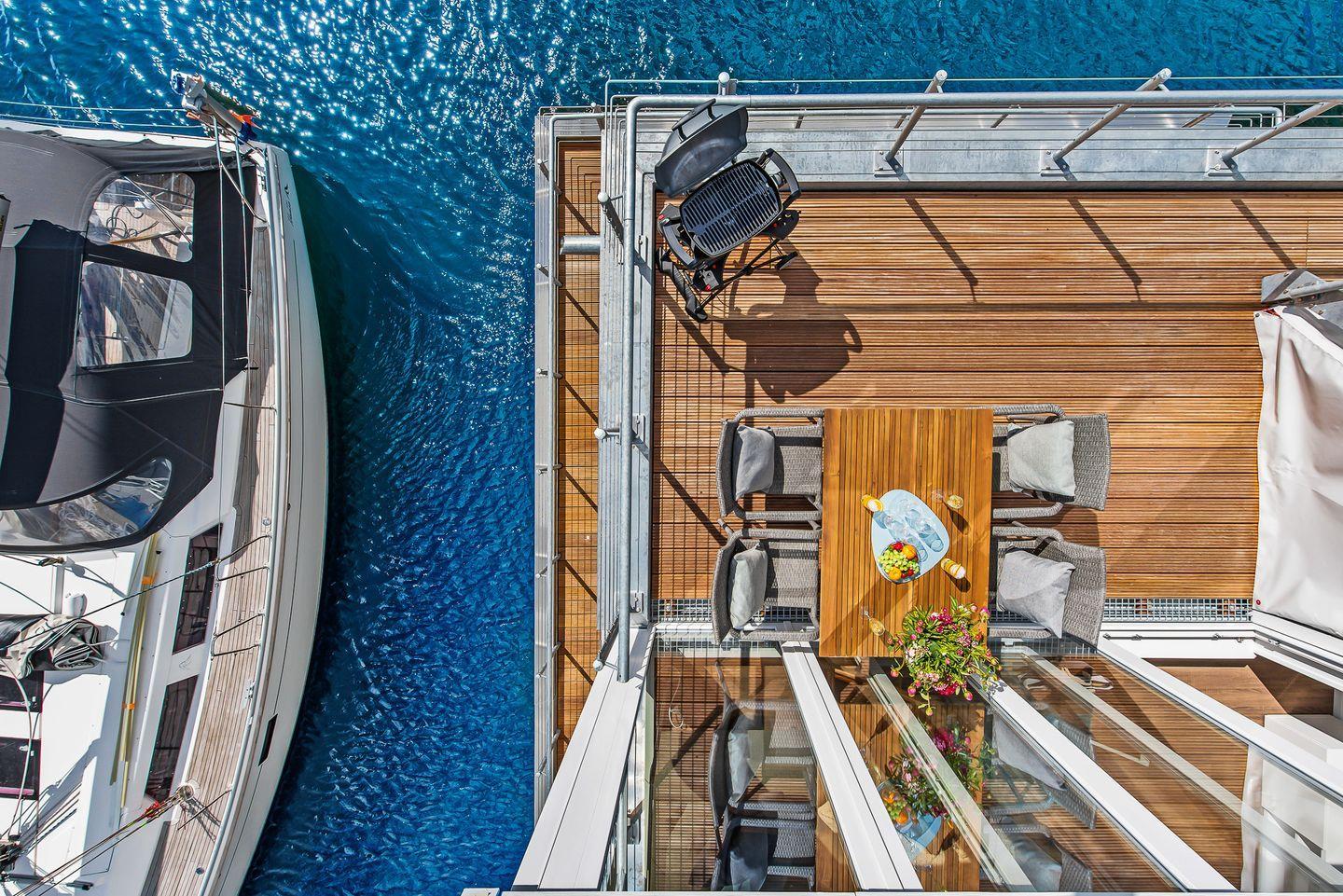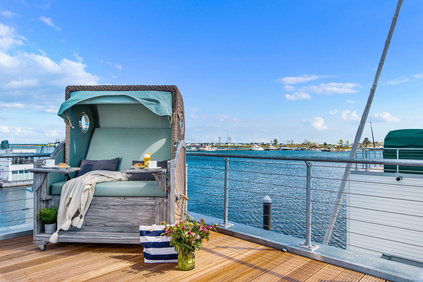 Auf dem Hausboot La Marina im Ostseeresort Olpenitz verschwimmen die Grenzen zwischen Komfort und Natur, zwischen Alltag und Meerzeit.