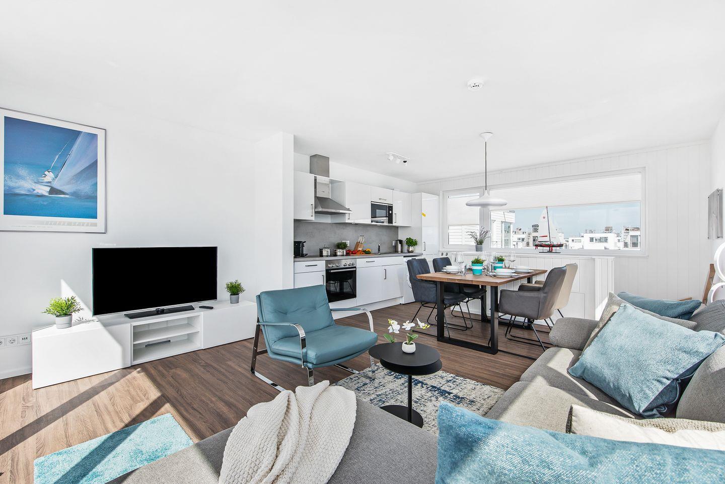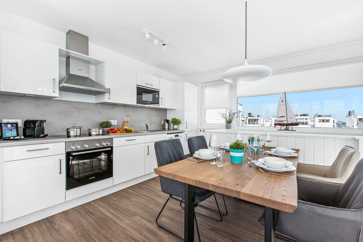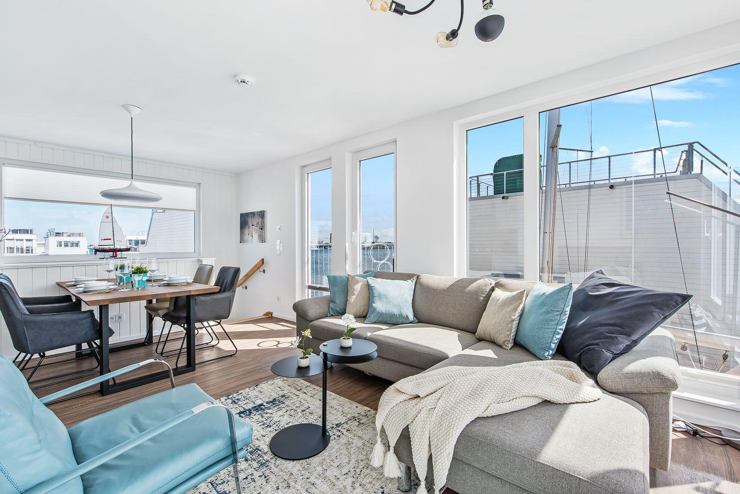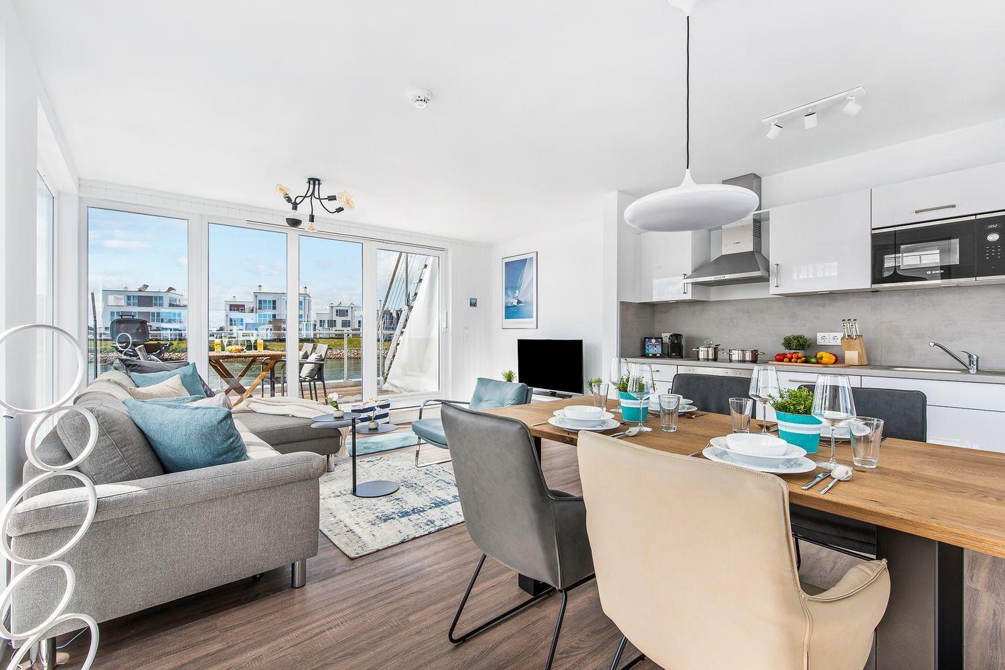 Für Unterhaltung sorgen Smart-TV und Home Entertainment. Oder Sie entschleunigen mit Blick auf die Marina und beobachten Segelboote, die vorbeiziehen.